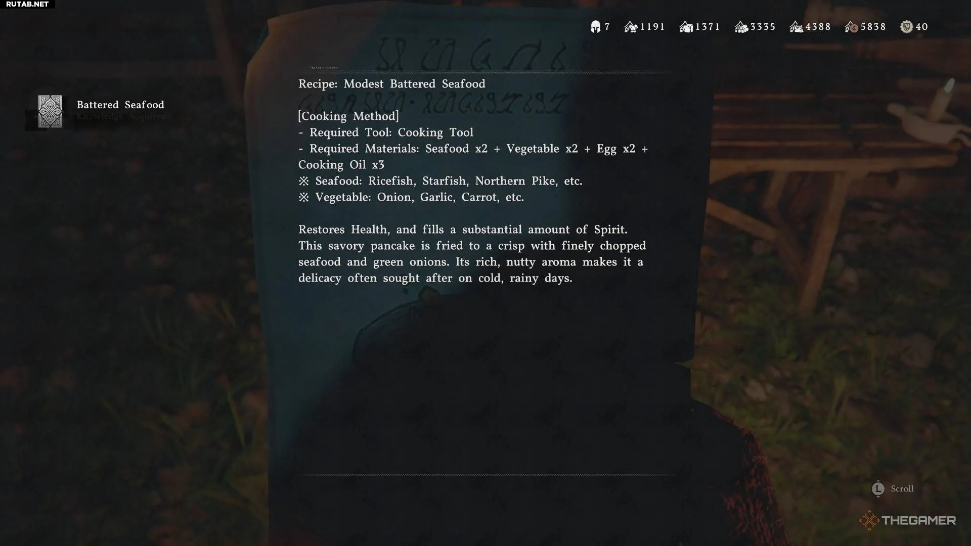 Это блюдо восстанавливает много здоровья, что делает его отличной находкой для ранней игры, учитывая простоту рецепта.