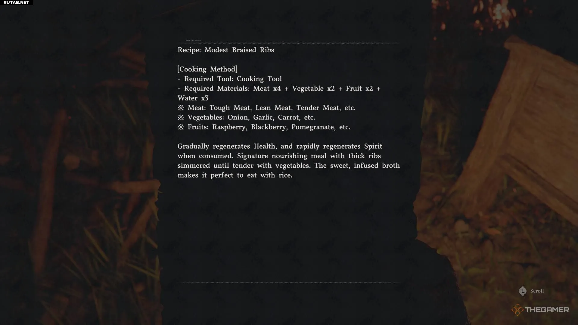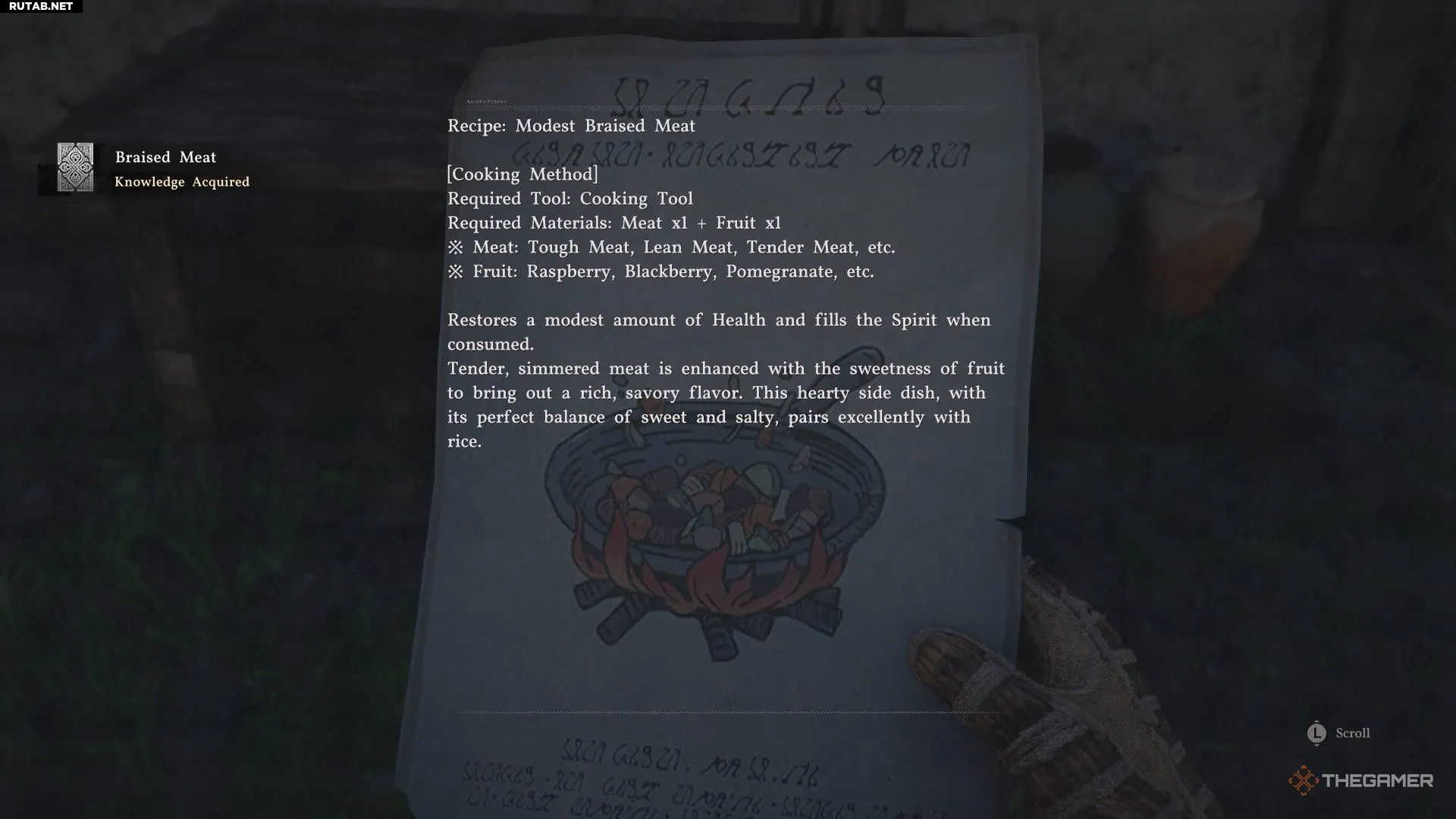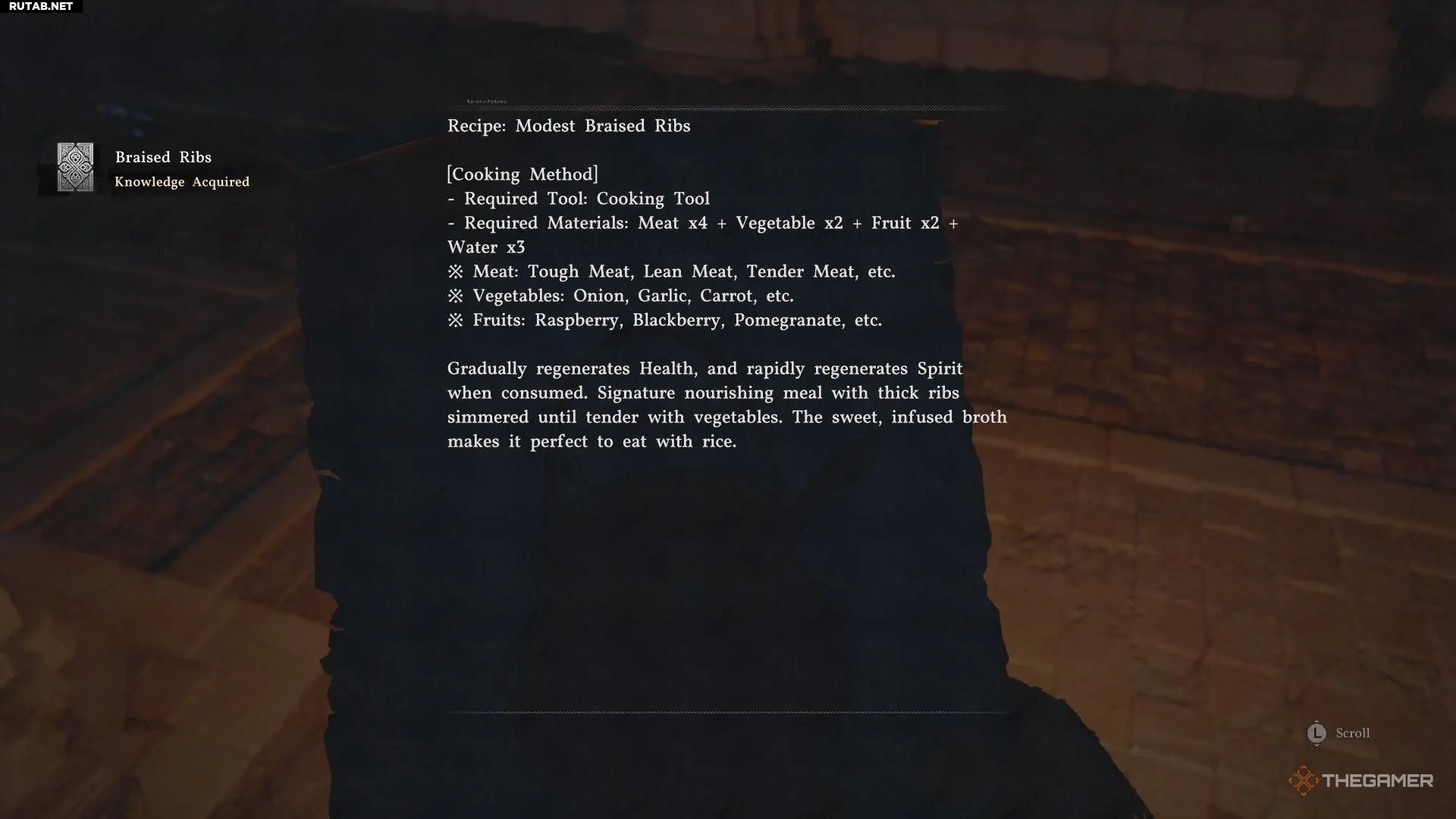 Рецепт тушёных рёбрышек я получил, побеждая врагов во время сюжетного задания, которое ведёт в Кальфад в шестом акте. Он выпадает при их убийстве, если обыскать тела.