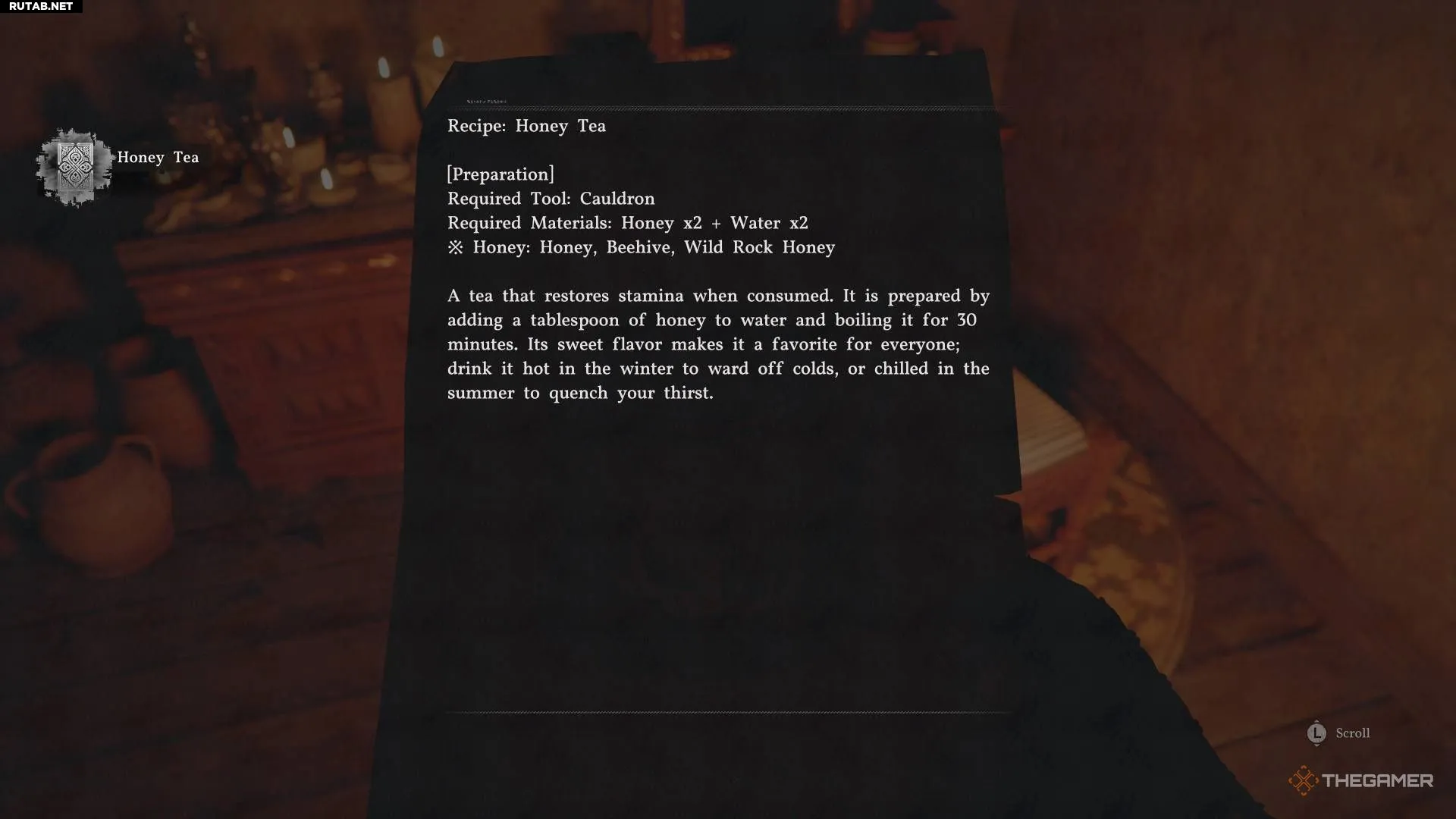 Рецепт медового чая находится в доме ведьмы в Ведьмином лесу, к западу от города Хернанд. Эта область будет заблокирована, пока вы не продвинетесь по основному сюжету.