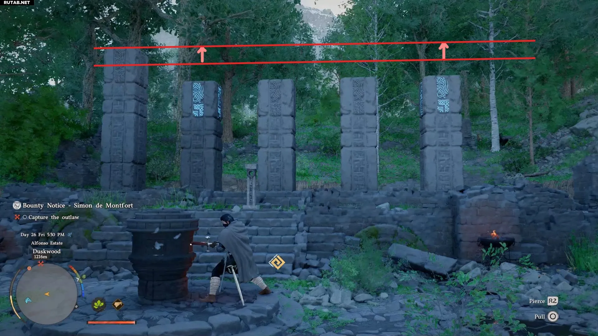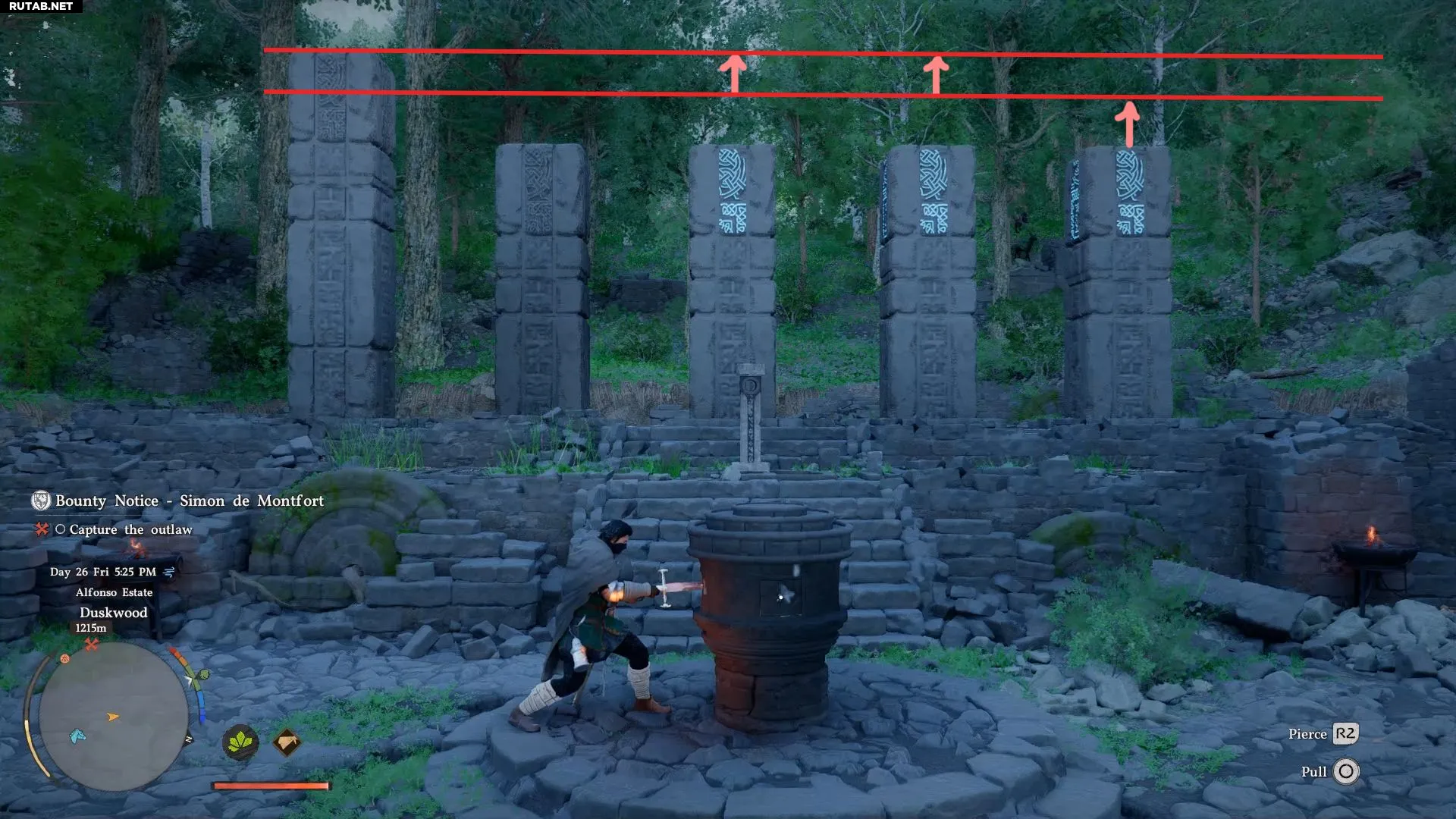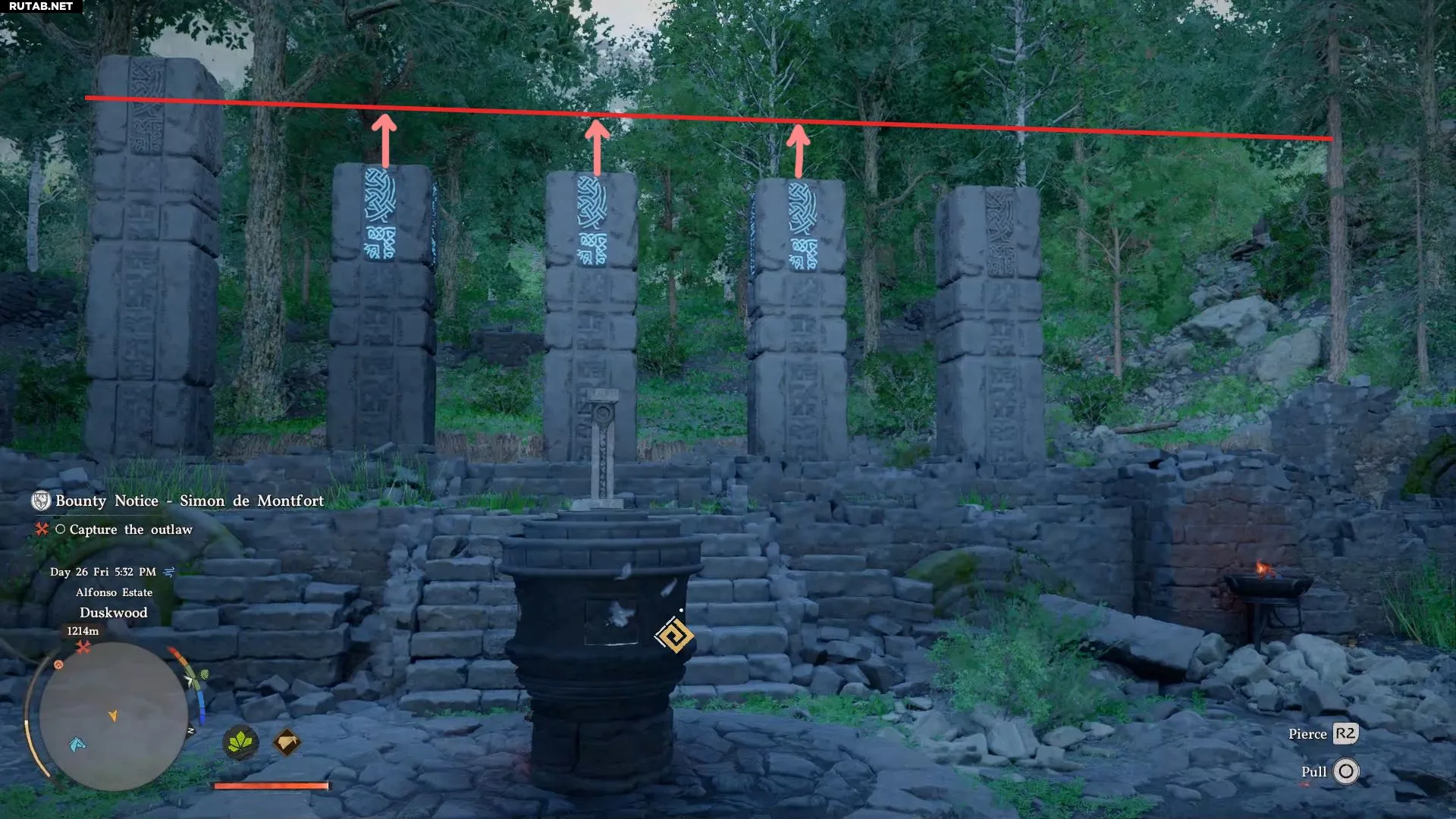 Решение головоломки с колоннами в Древних руинах Сумеречного леса в Crimson Desert