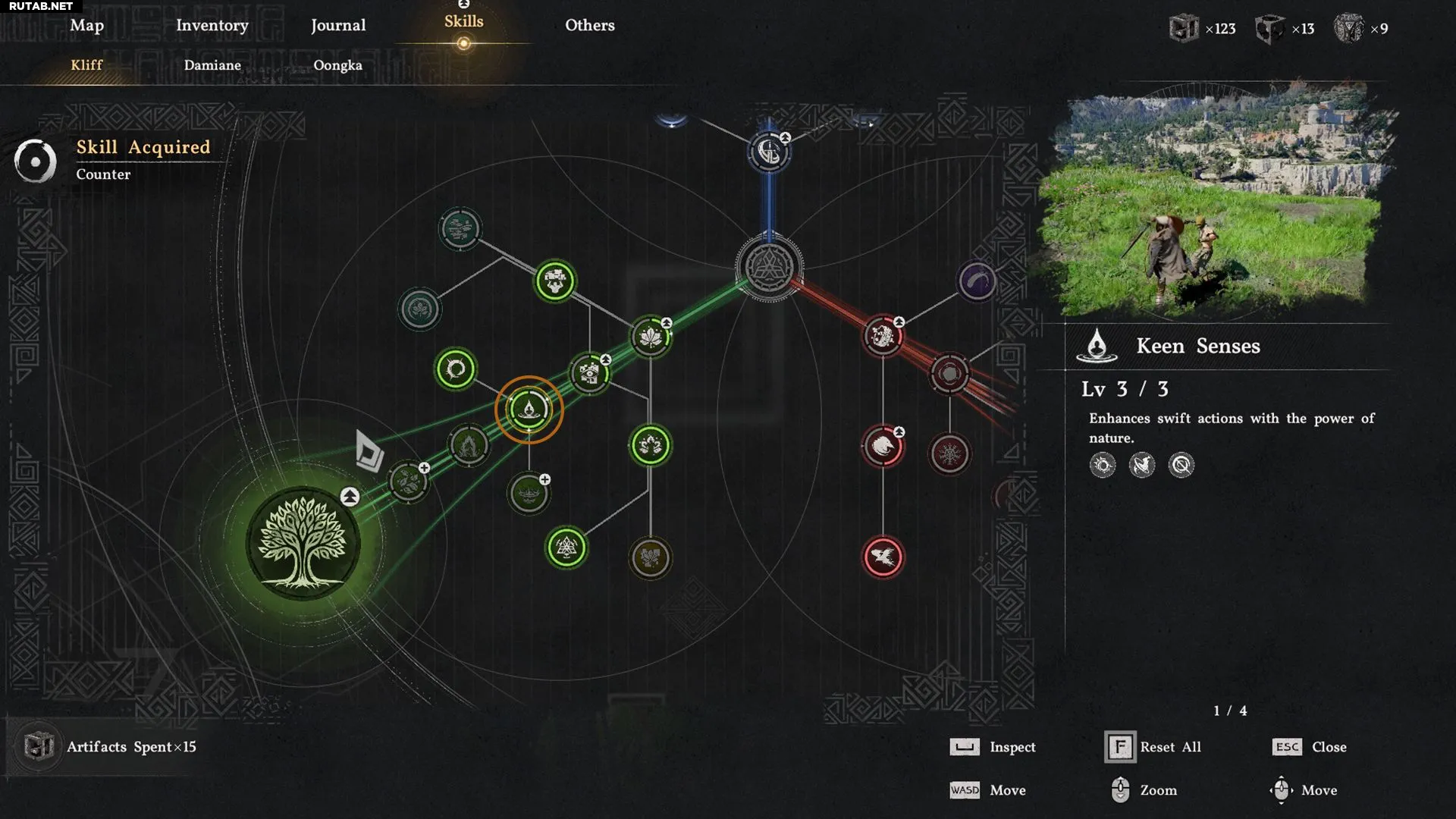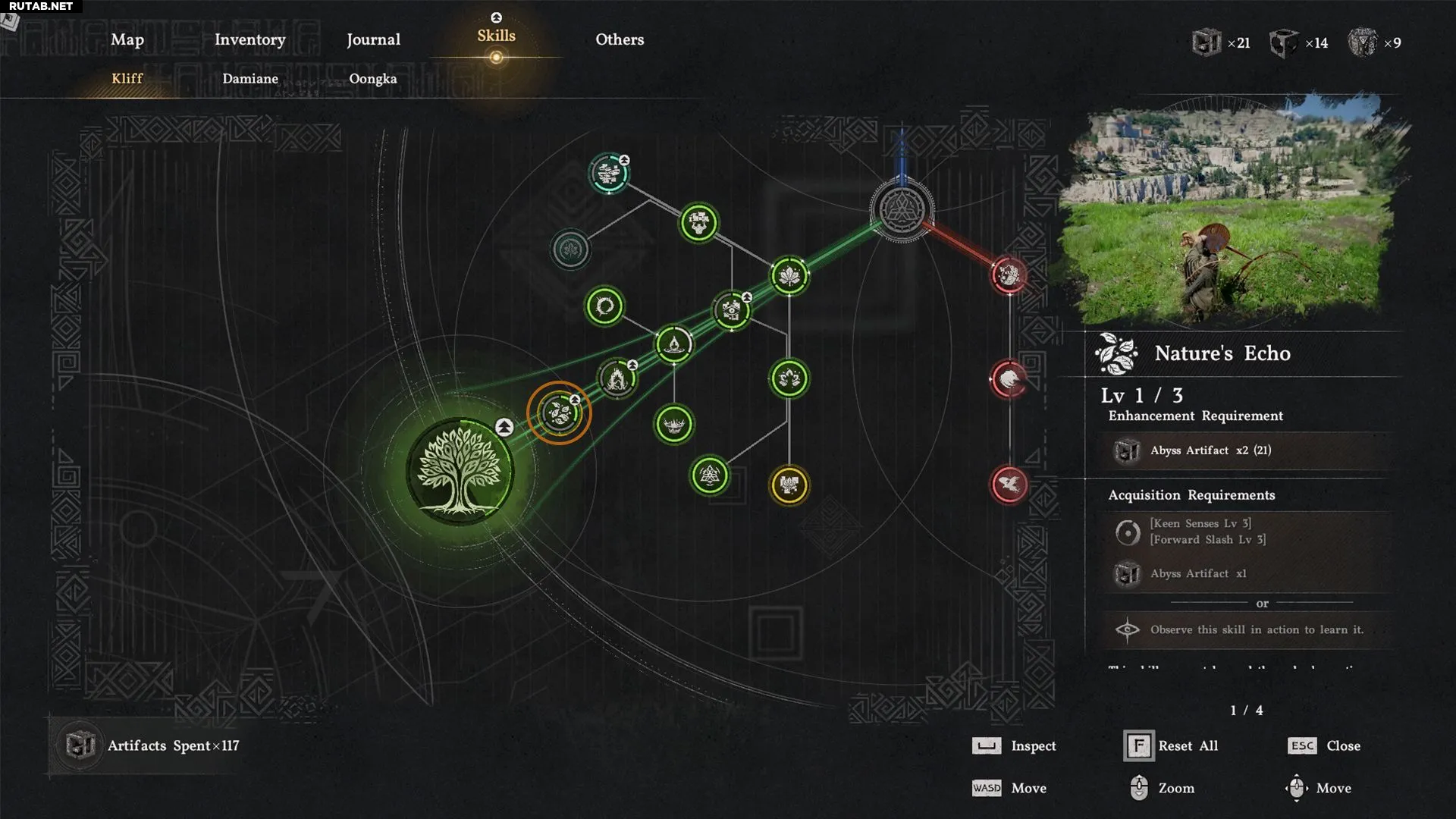 Чтобы прокачать навык Эхо природы, сначала нужно повысить навык Обострённые чувства до 3-го уровня. Это отличное улучшение мобильности Клиффа, так как оно позволяет ему гораздо эффективнее парировать, уклоняться и контратаковать. Даже если бы для улучшения Эха природы не требовалось прокачивать этот навык, Обострённые чувства всё равно были бы одним из лучших навыков для ранней прокачки в Crimson Desert.