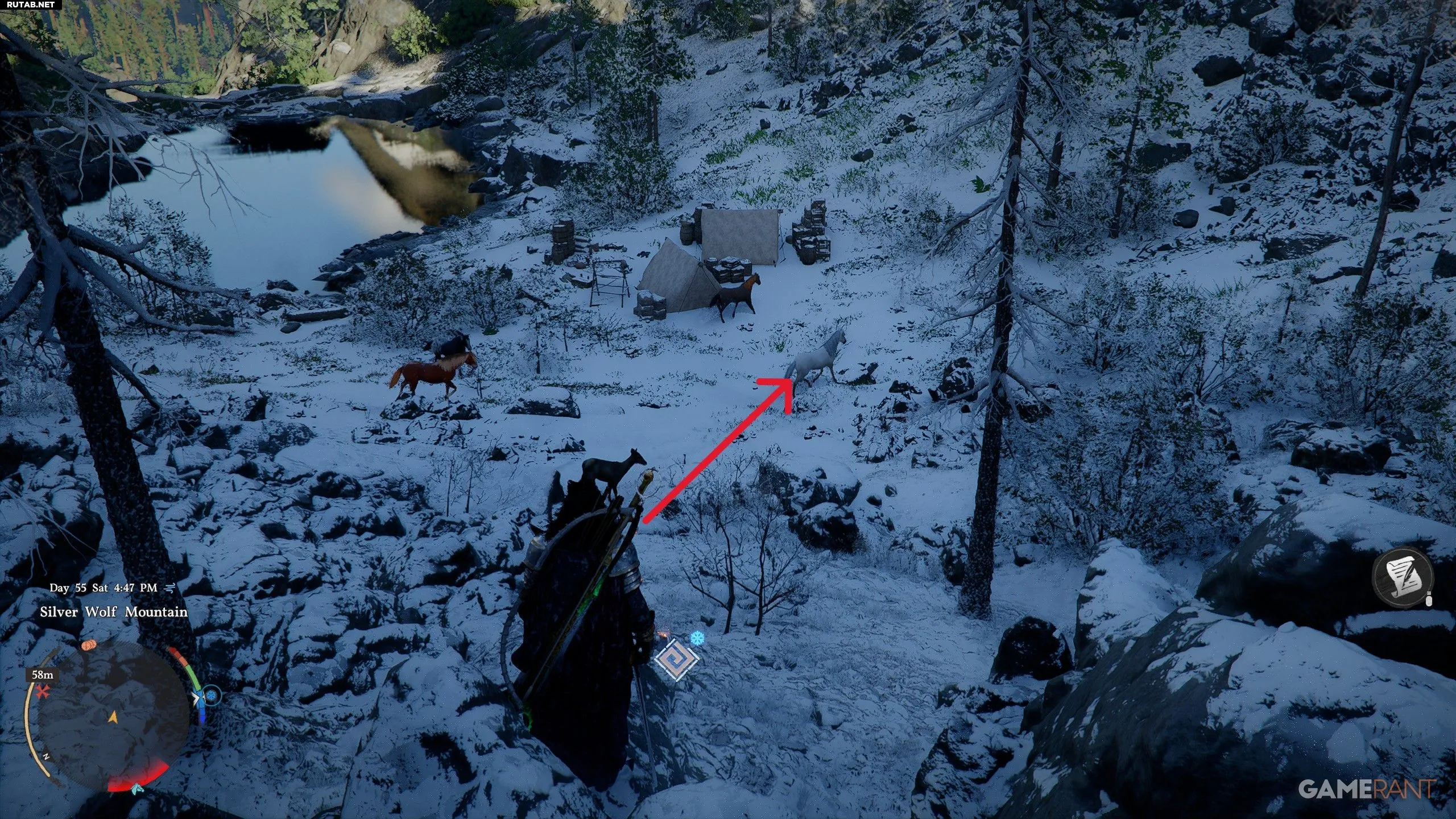 Местоположение: озеро рядом с «Укрытием в снежной траве» в горах Серебряного Волка, регион Пейлун. Ищите к югу от буквы «P» на карте.