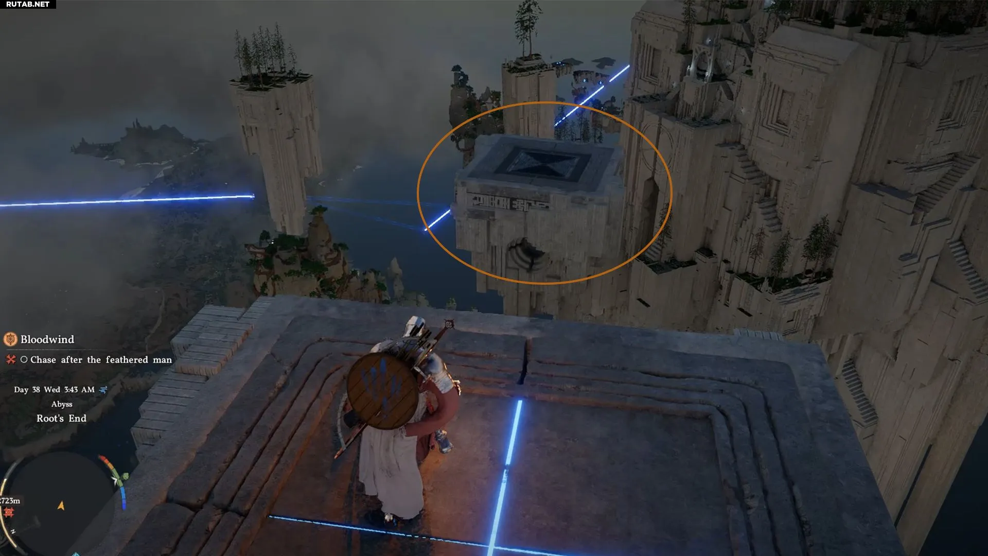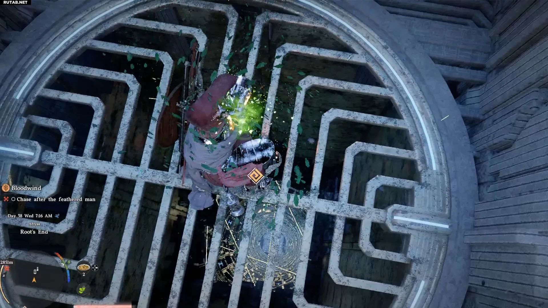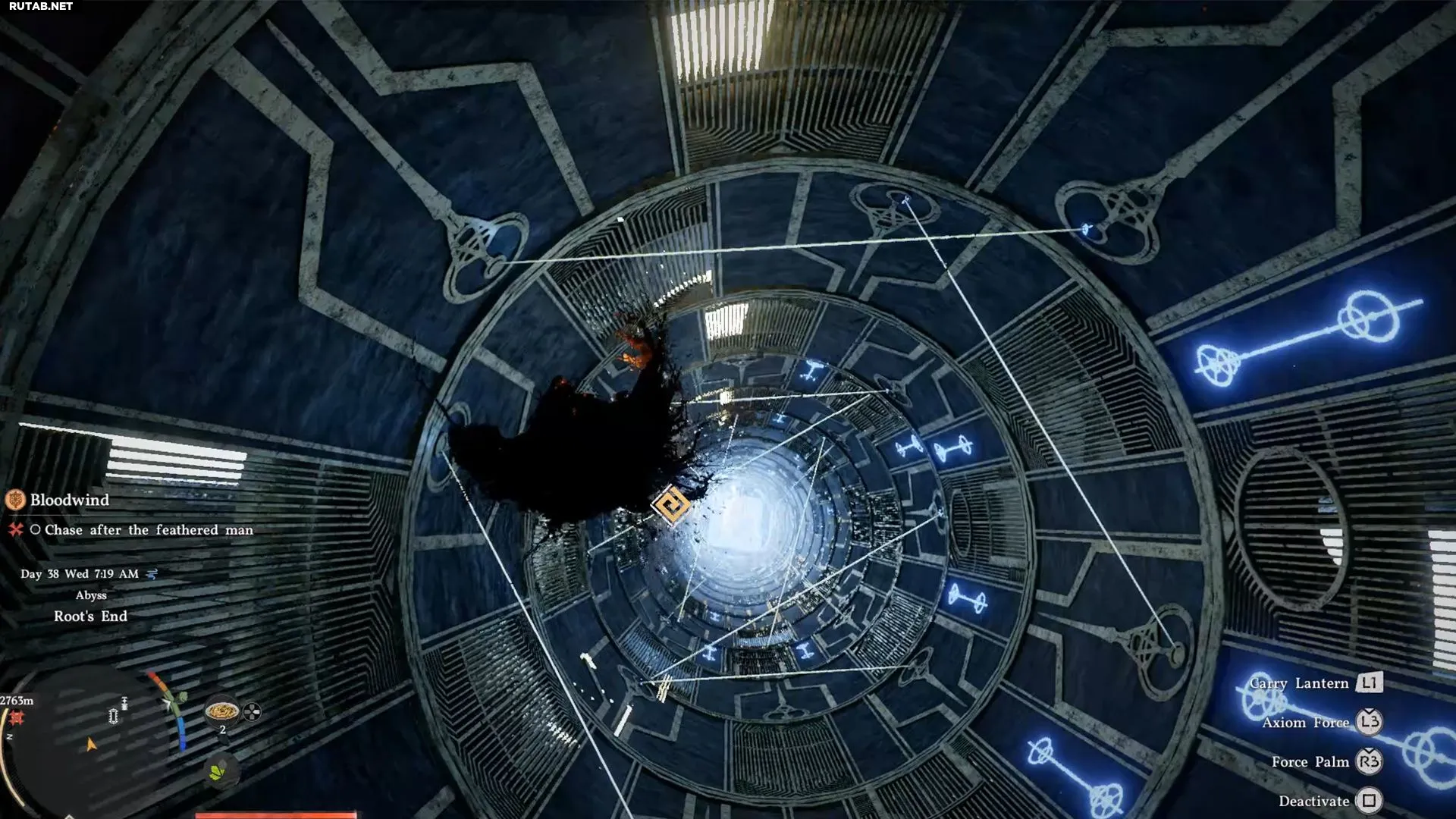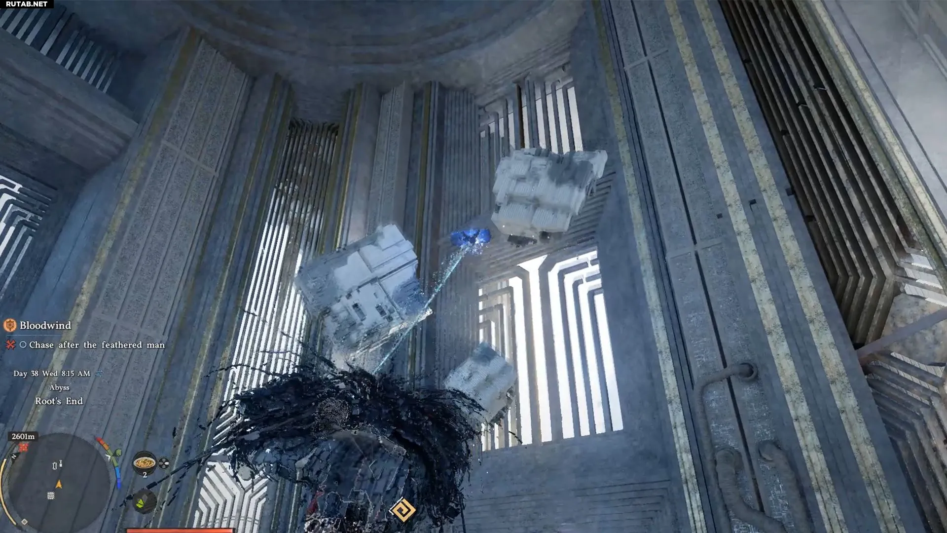 Это последняя платформа перед головоломкой. Впереди три разрушающиеся платформы, которые рухнут вскоре после того, как вы на них встанете. Ваша задача — добраться до последней, а затем совершить прыжок к основной области впереди. Используйте крылья сразу после прыжка или трижды примените «Воздушную силовую ладонь» для дополнительной высоты. Этого должно хватить, чтобы достигнуть головоломки «Корень конца» и активировать Нексус Бездны.