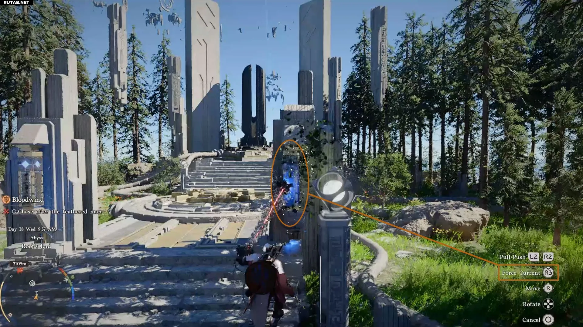Это активирует последний механизм. Присядьте в его центре и используйте «Силовую ладонь», чтобы завершить головоломку «Корень конца».
