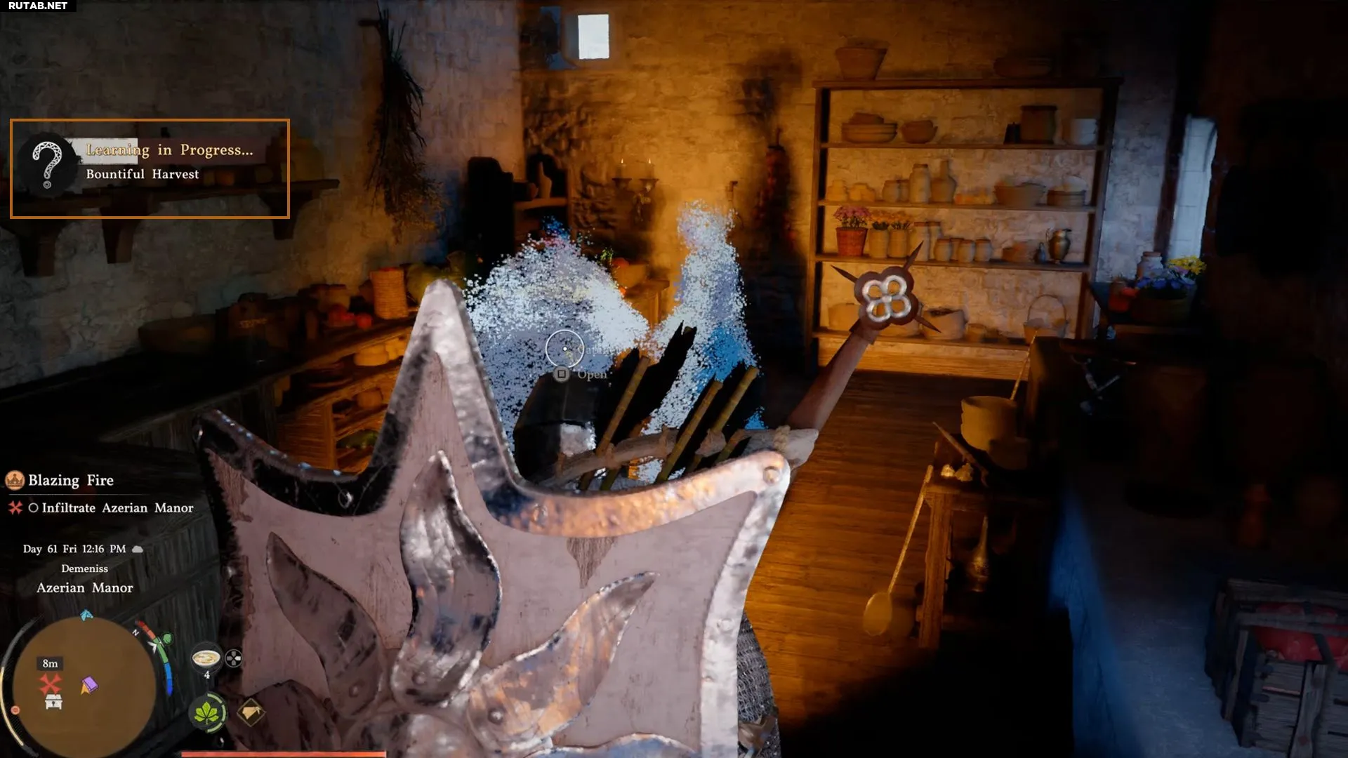 Снова направьте фонарь в центр комнаты, чтобы изучить и воспроизвести воспоминание «Щедрый урожай». Теперь Клифф успешно проник в поместье Азериан в Crimson Desert.