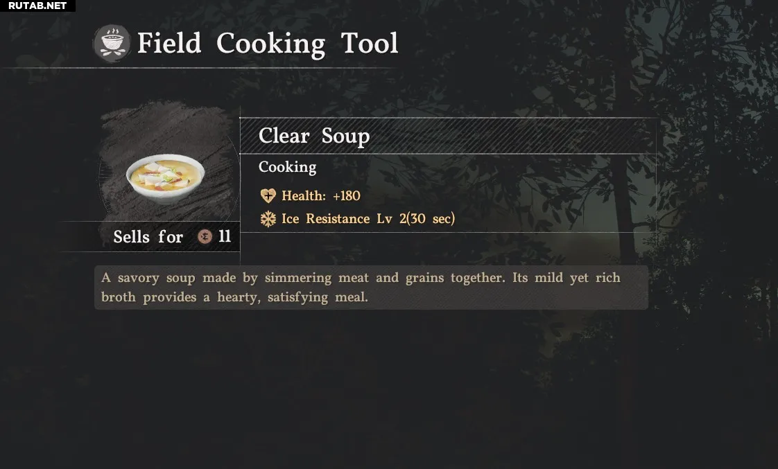 Если вы предпочитаете готовить, то прозрачный суп даёт 2 уровень сопротивления льду, а все ингредиенты для него продаются у бакалейщика и мясника в городе Эрнанд. Рецепты супов более высокого уровня повышают это сопротивление ещё сильнее.