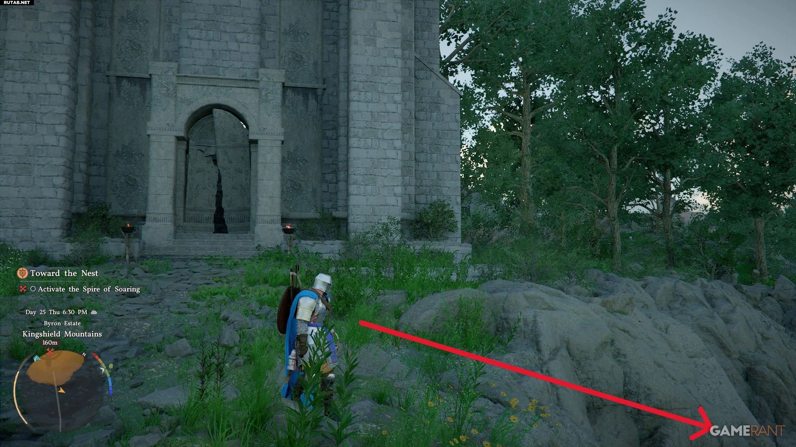 - В горах Кингшилд поместья Байрон найдите справа от главных дверей спуск по обрыву.