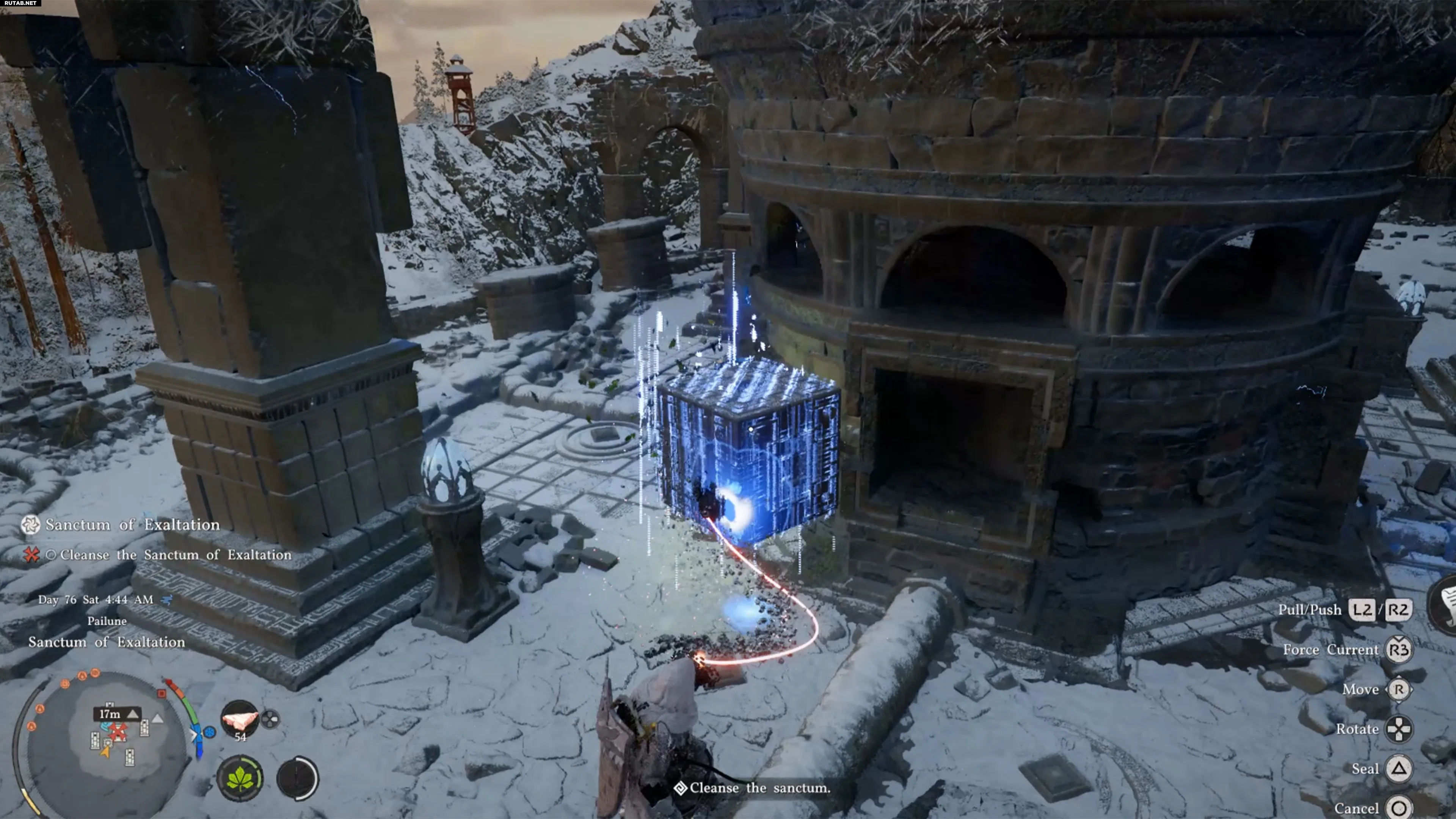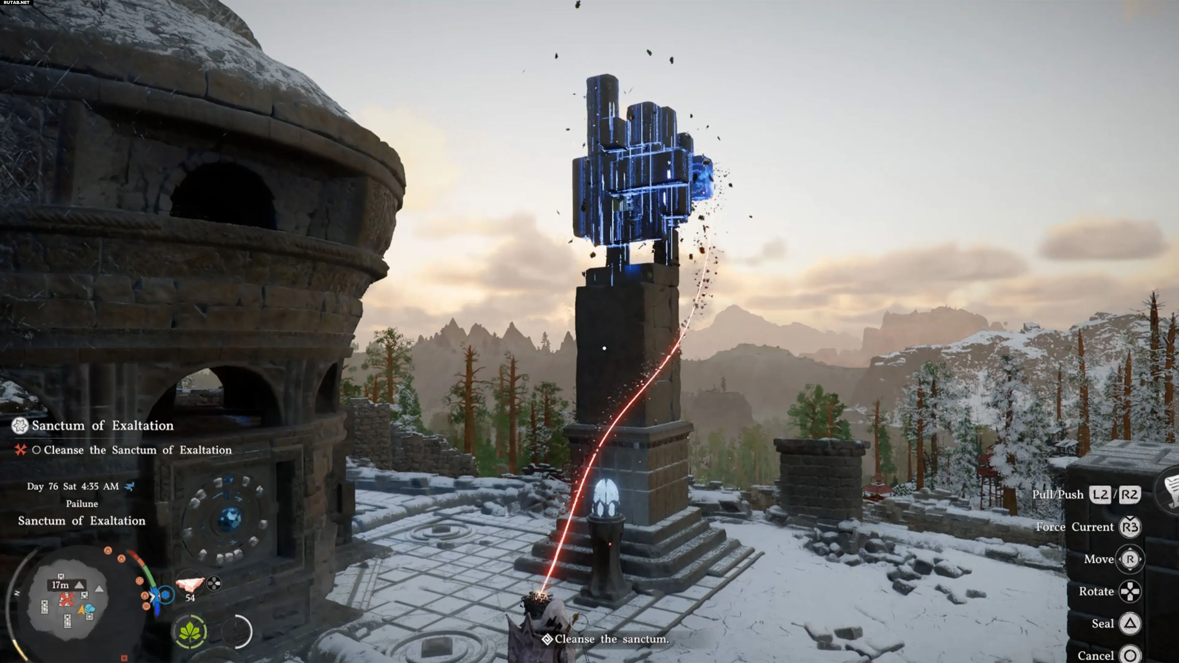 У генератора извлеките ядра из горшка и с помощью Силы Аксиомы перетащите их на правильные места. Затем используйте навык «Ладонь Силы» или «Воздушная Ладонь Силы», чтобы вставить их.