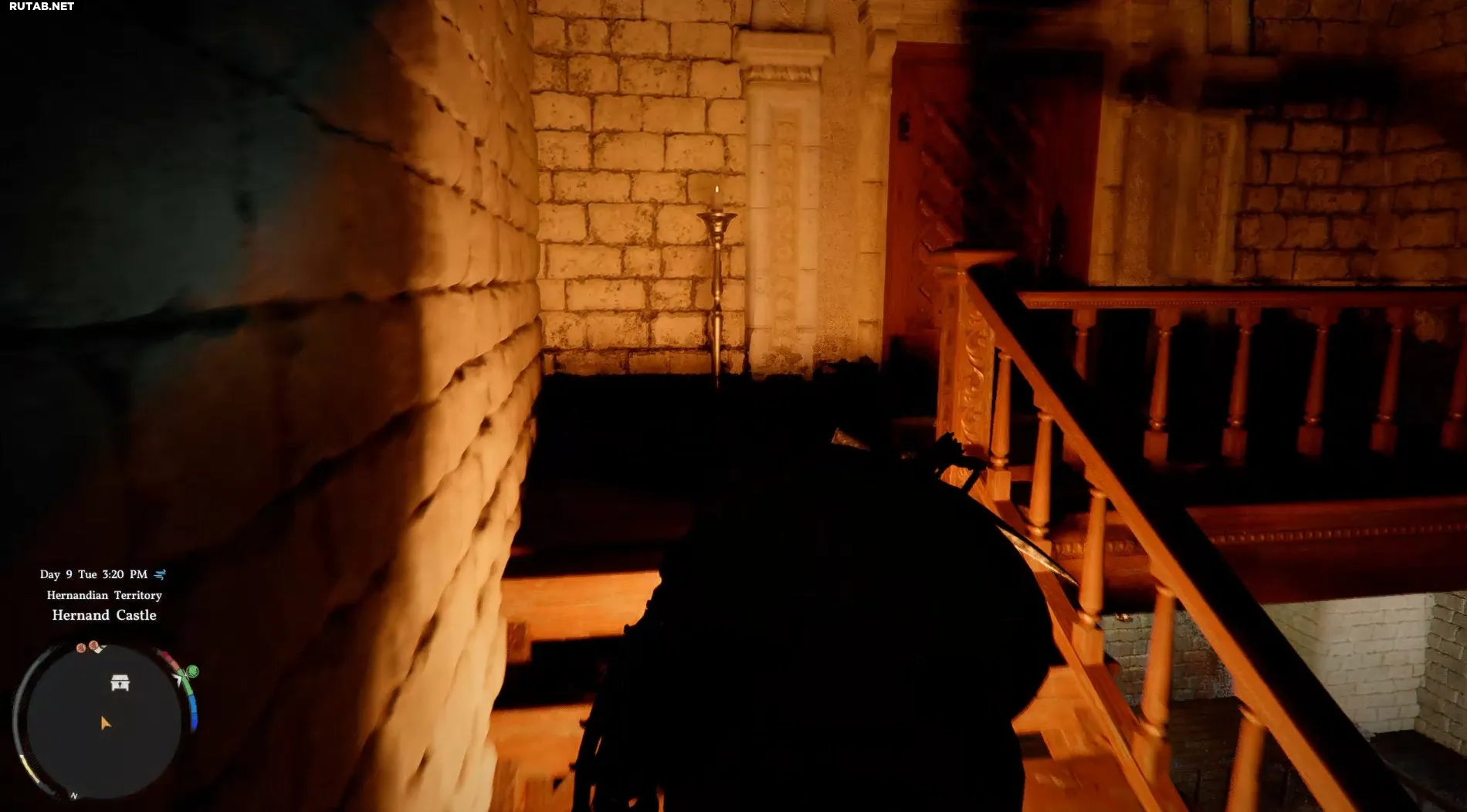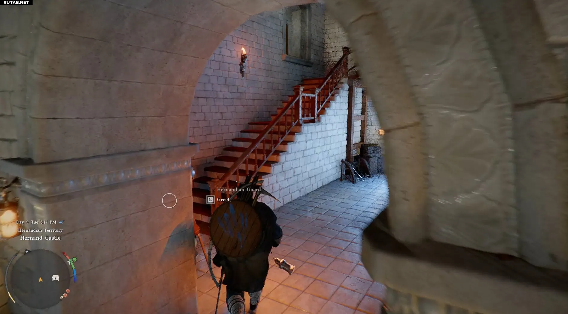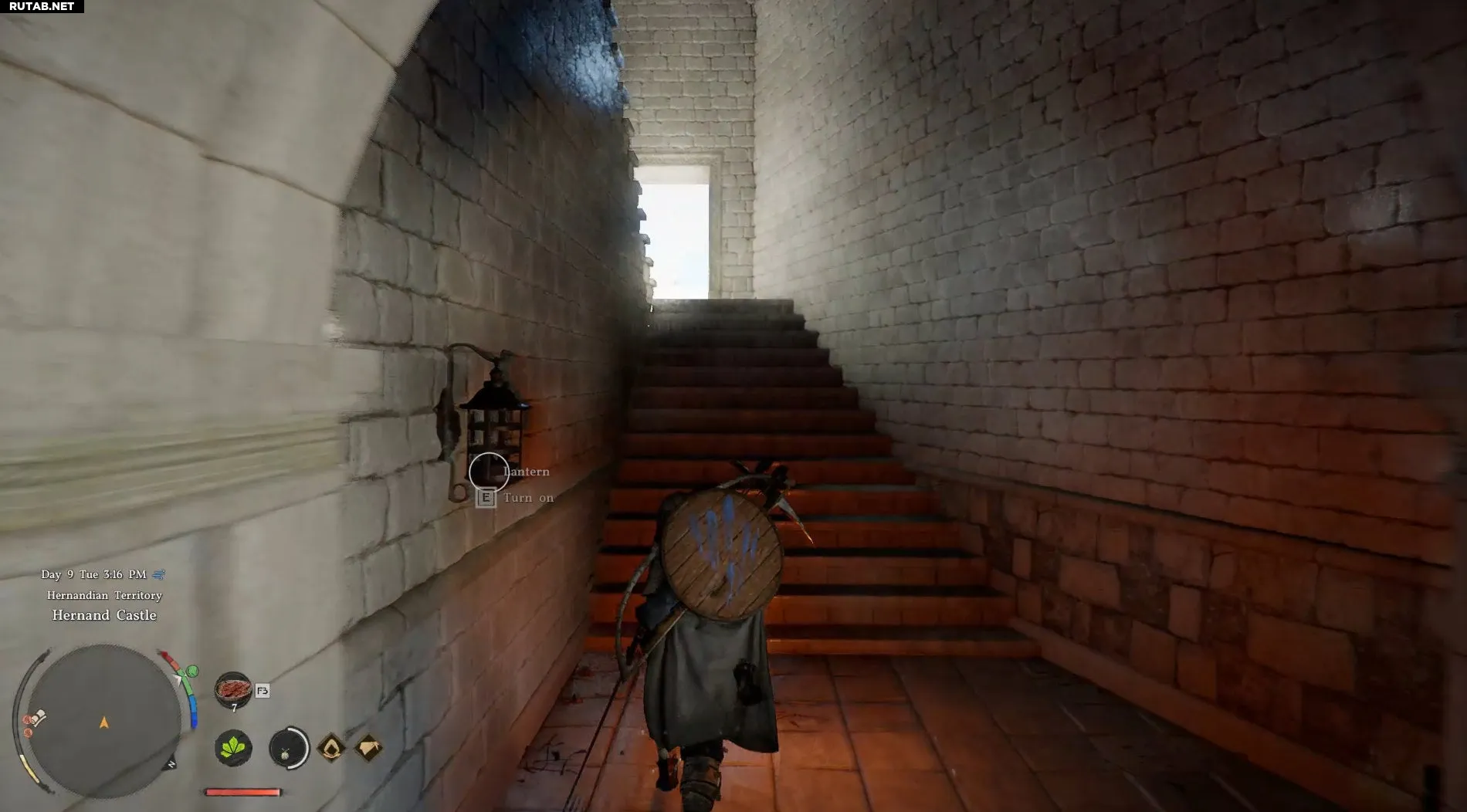 Попав на территорию замка, идите к главному зданию и поднимитесь по каменным ступеням справа. В следующем помещении продолжайте подниматься по лестницам до самого верха.