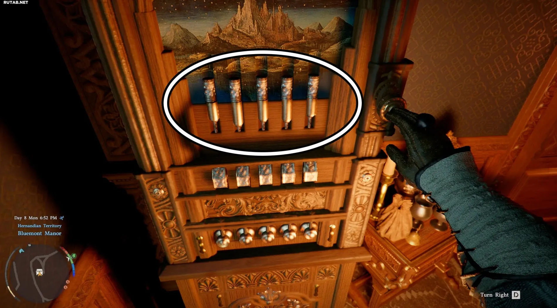 Чтобы попасть внутрь, поднимитесь на балкон слева от парадной двери. Там вы найдете несколько окон, которые можно открыть, чтобы проникнуть внутрь, не тратя ключ. Войдя в комнату, выйдите в коридор и пройдите в следующую комнату. Сейф будет стоять рядом с дверью. Убедитесь, что в комнате никого нет!