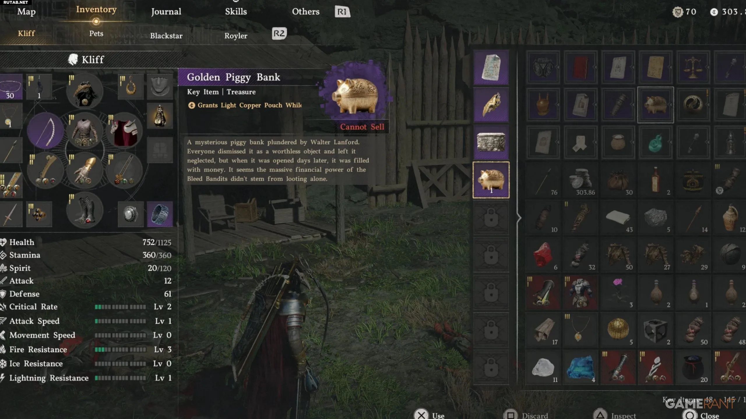 - Чтобы использовать Золотую копилку, зайдите в инвентарь и выберите вкладку «Ключевые предметы», где вы найдёте этот предмет.