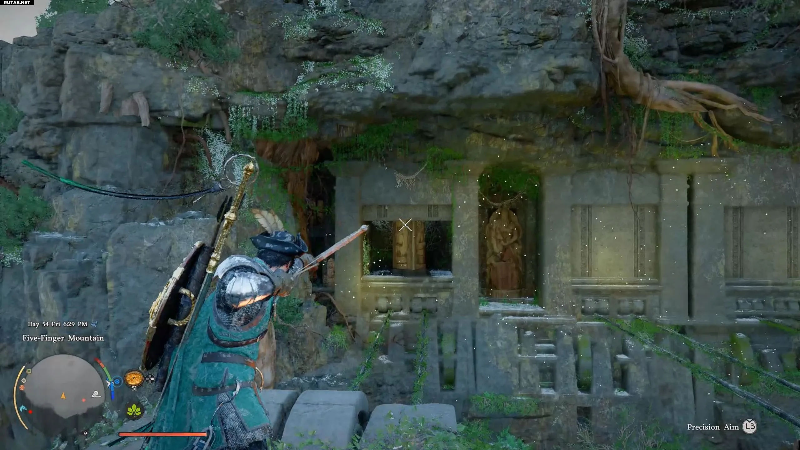 Обычный выстрел медленно поворачивает статую, а навык «Заряженный выстрел» вращает ее быстро. Механизм через некоторое время начнет медленно возвращаться назад, а ворота закроются, поэтому важно целиться точно.