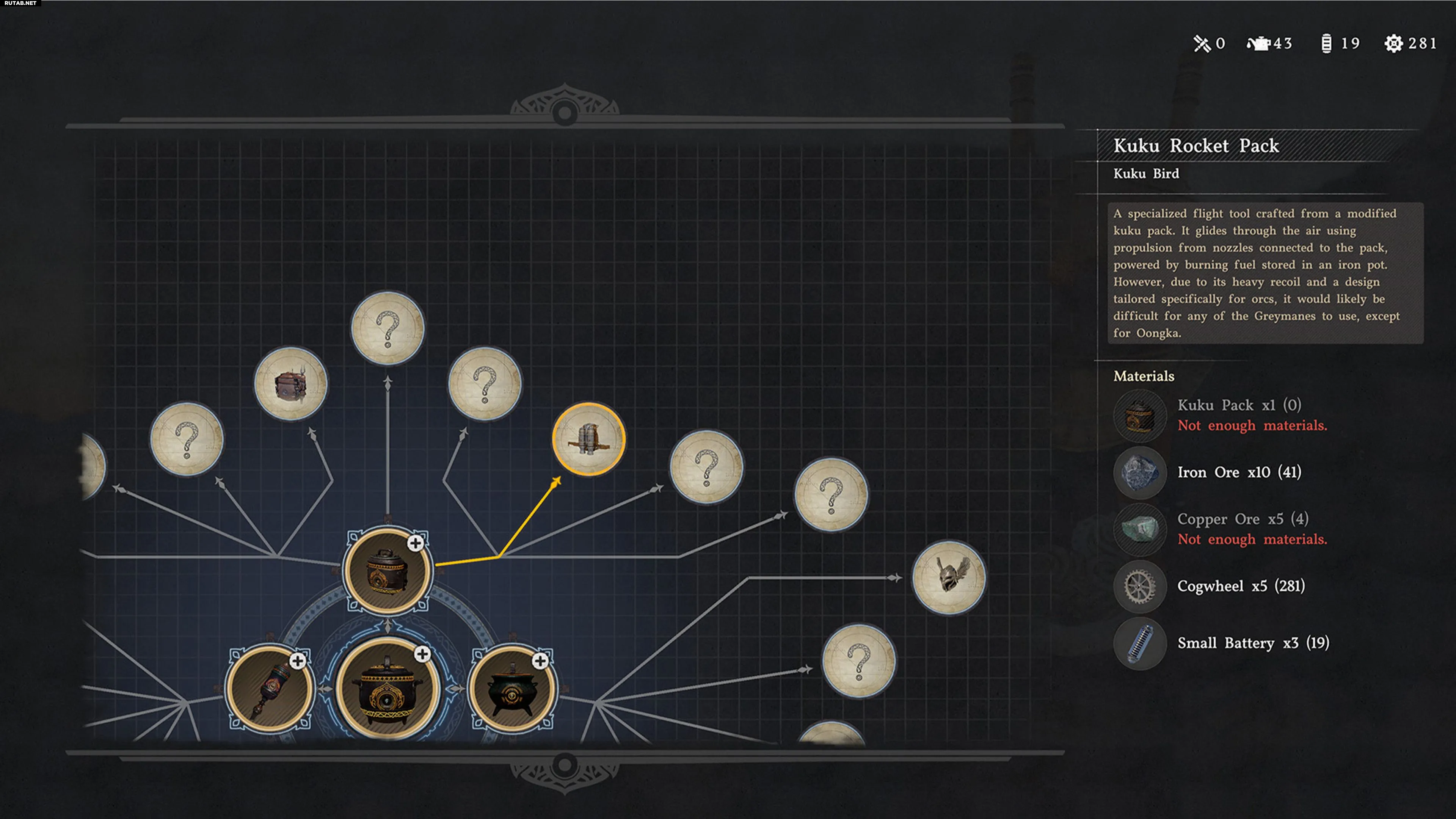 Чтобы создать реактивную сумку Куку, игрок должен получить письмо от Гримнира, в котором тот сообщает о своём великом открытии и просит навестить его снова.