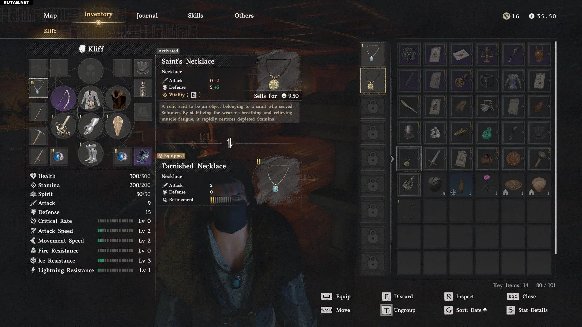 Главная особенность ожерелья — его способность «Жизненная сила». Наденьте его, зажмите кнопку лечения (по умолчанию F3 или D-Pad Right), выберите слот в положении «три часа» и найдите там ожерелье. Активируйте его (клавиша B или одновременно L2+R2 на контроллере). Если заряд полон, оно мгновенно восстановит всю вашу выносливость.