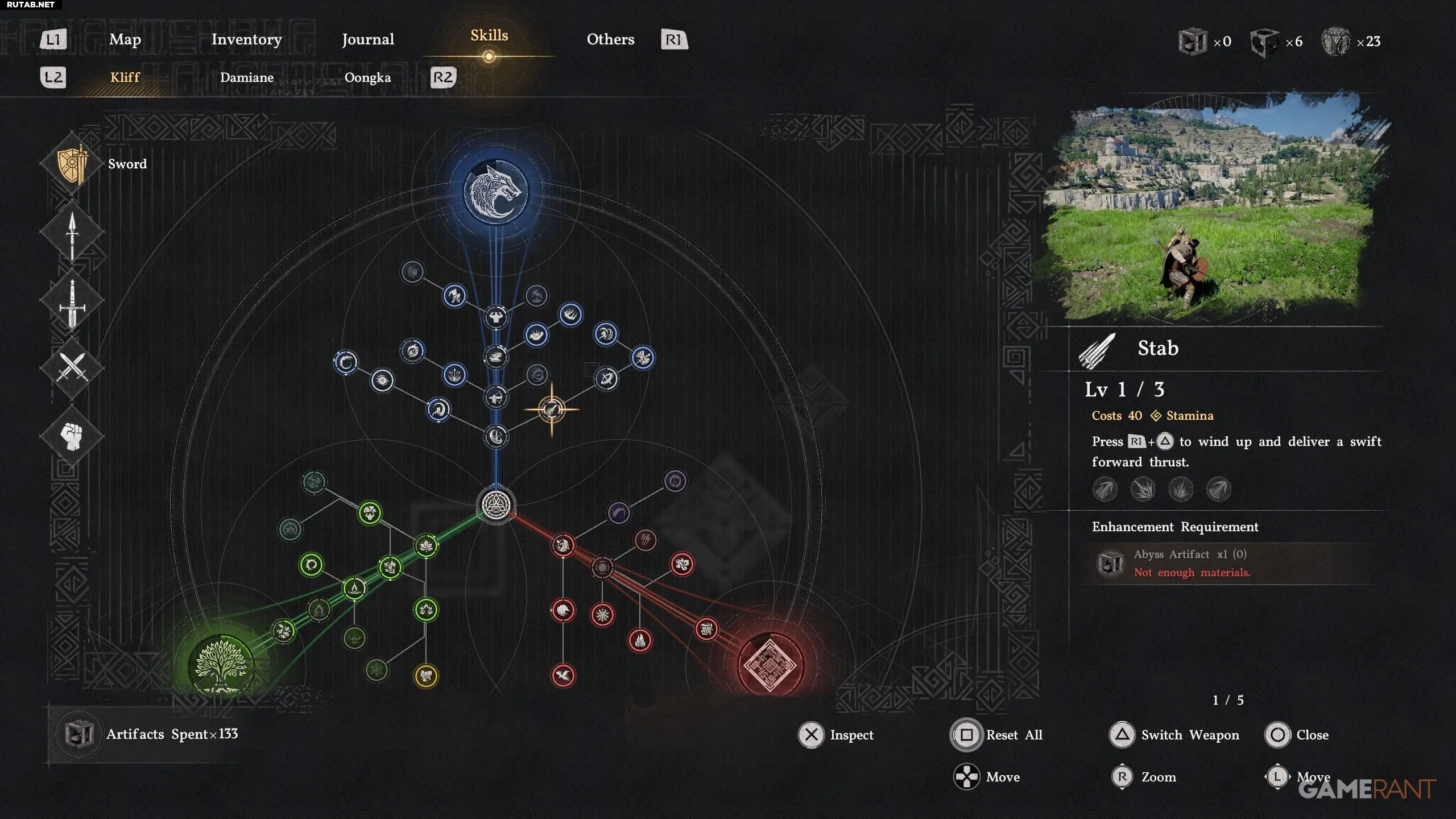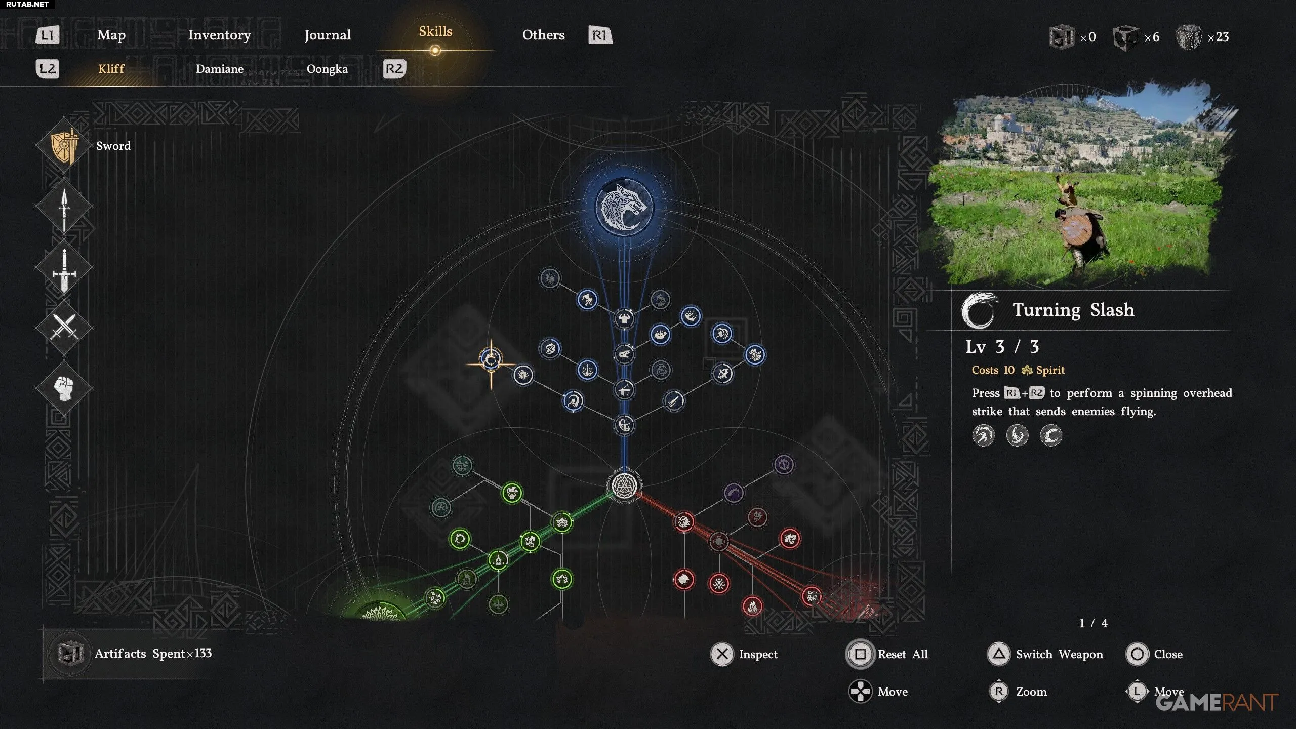 Круговой удар можно улучшить с помощью Артефактов Бездны в синем дереве навыков. Используется комбинацией R1+R2 (RB+RT).
