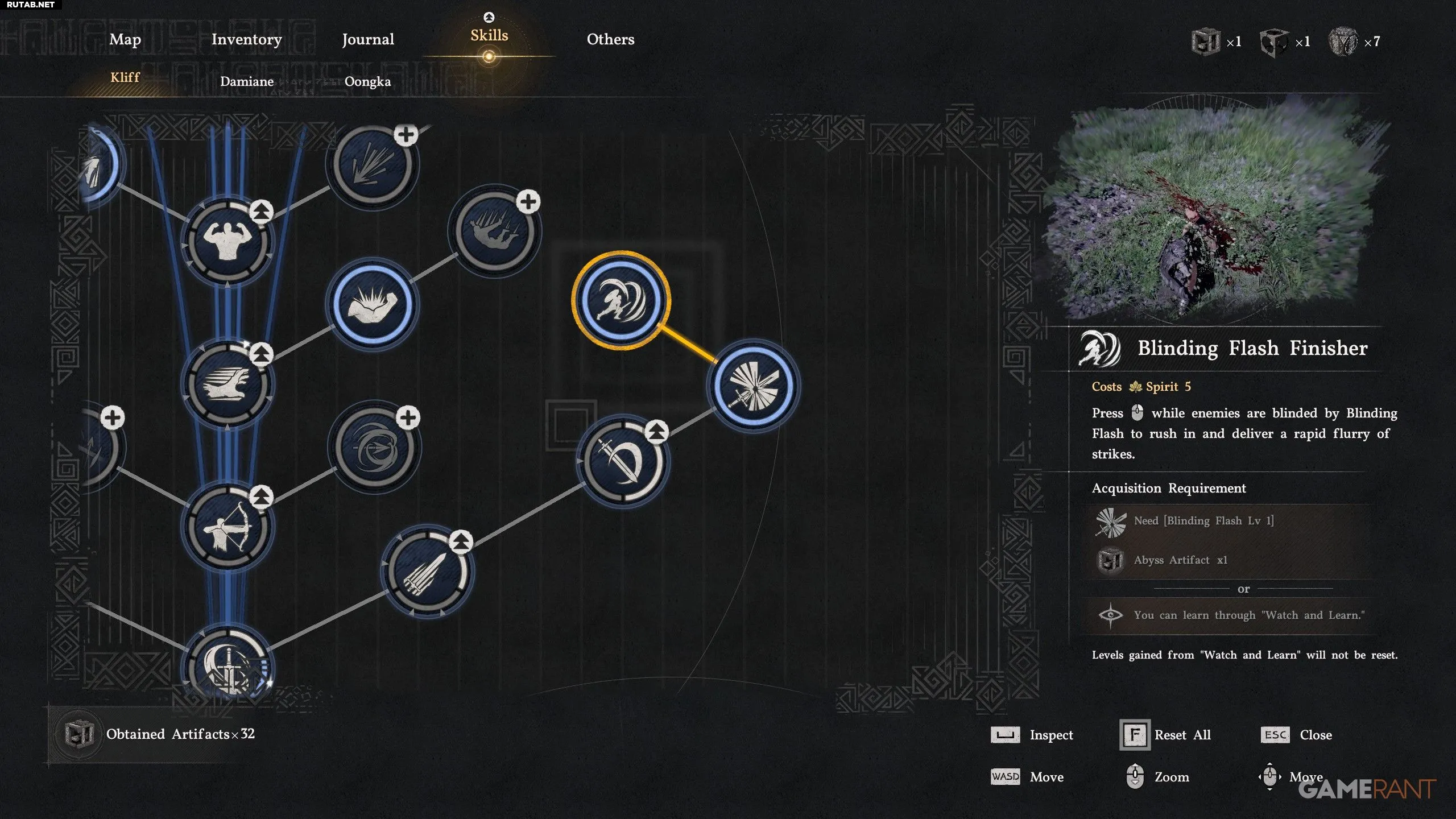 - Ослепляющая вспышка — синее древо навыков. Позволяет нажать R2 во время «Ослепляющей вспышки», чтобы стремительно атаковать врага серией быстрых ударов. Это оглушает Мюрдина, наносит урон и является вашим основным методом атаки.