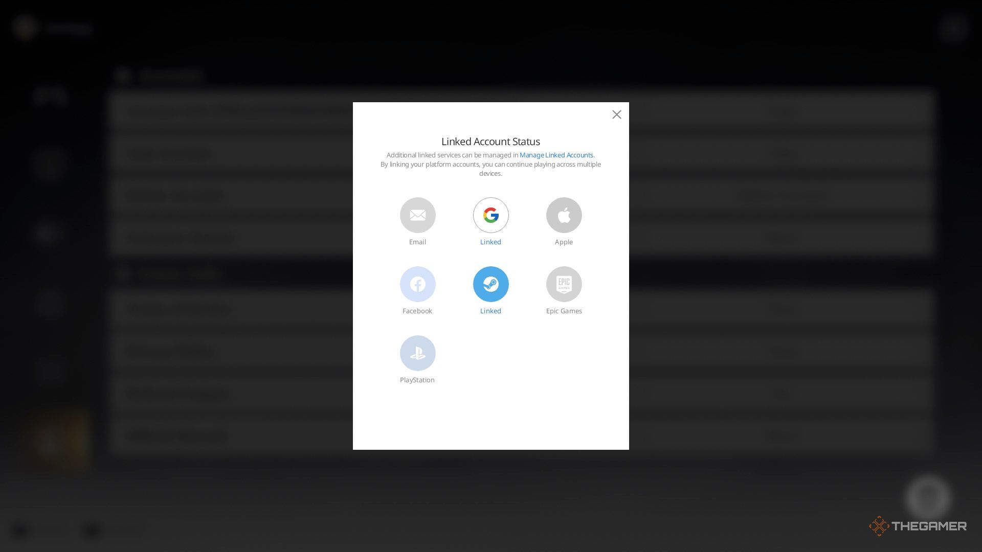 Появится небольшое меню, в котором нужно нажать на ссылку «Управление привязанными аккаунтами». Это откроет веб-страницу, где вы можете привязывать и отвязывать аккаунты.