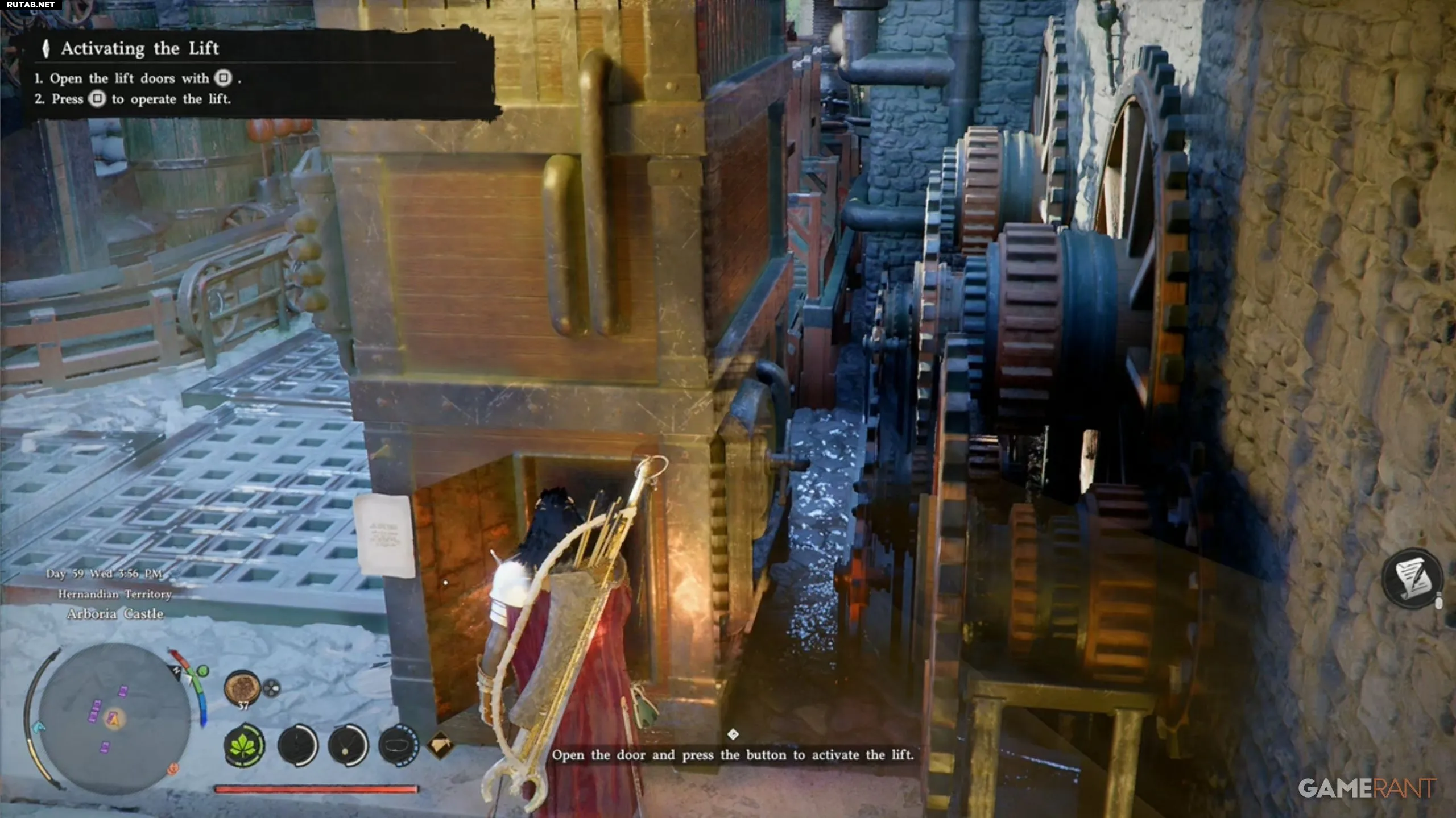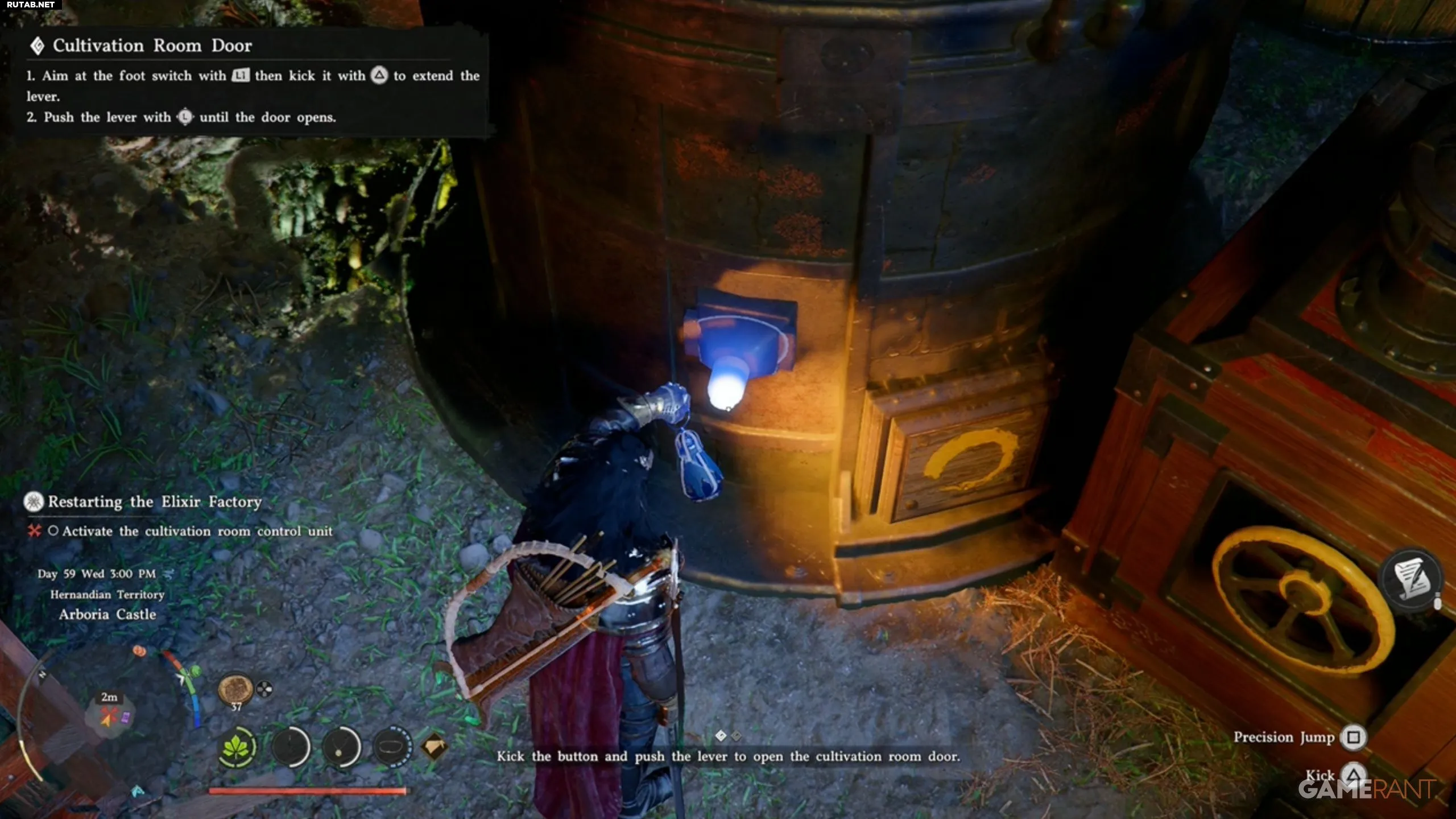 - Вернитесь по лестнице наверх. Справа от пнутого квадрата теперь доступна рукоять — возьмитесь за неё, нажав Square.
