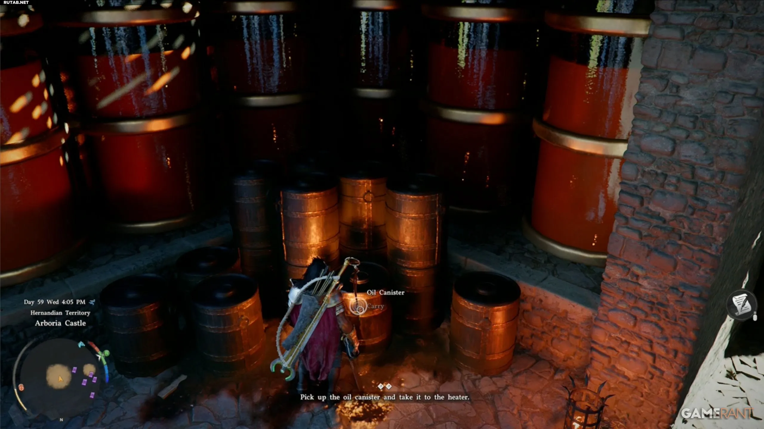 - Напротив нагревателя стоят бочки с маслом. Поднимите одну из них, нажав Square.