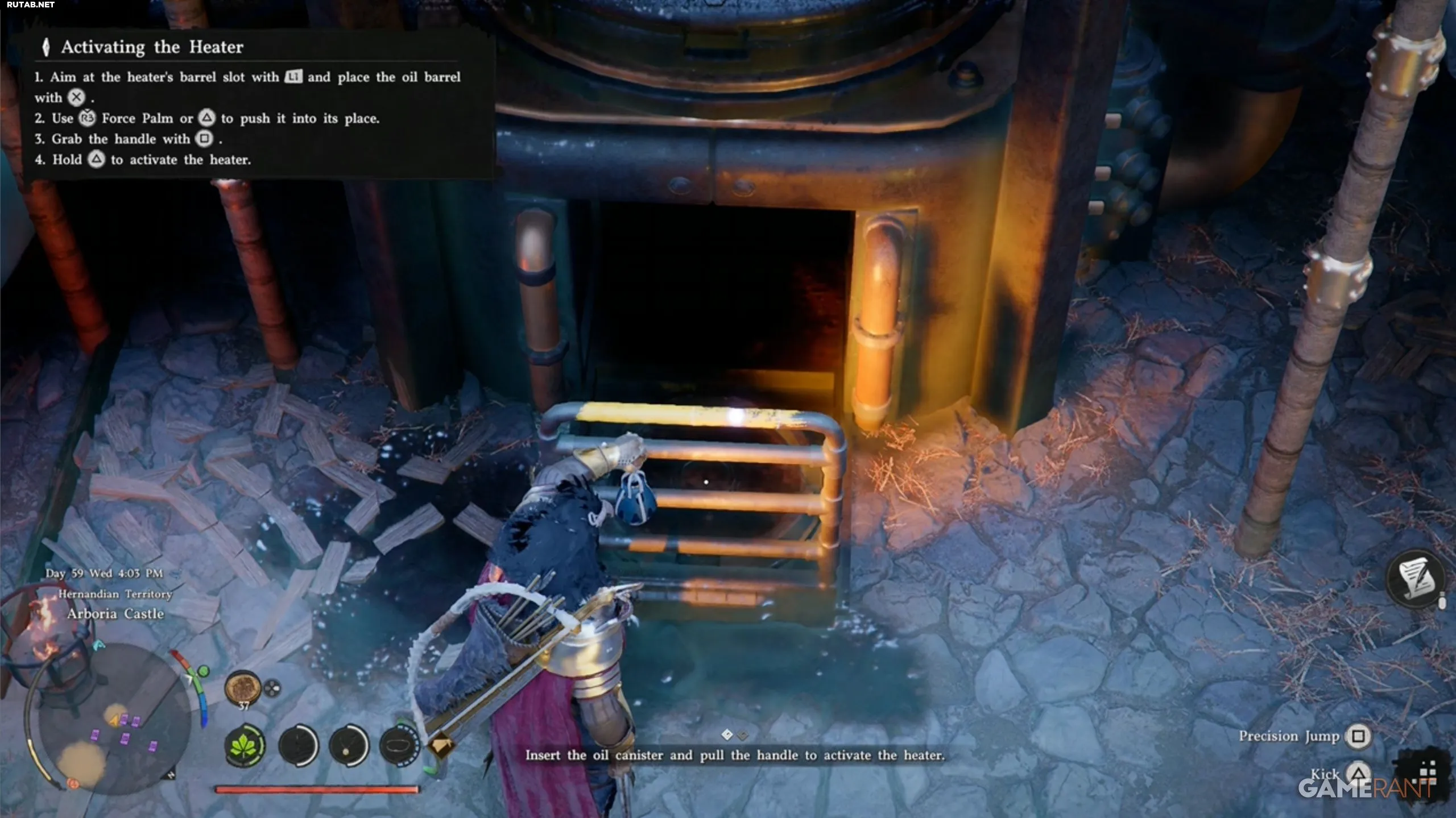- Сверху опустится рукоять. Возьмитесь за неё (Square), затем удерживайте Triangle, чтобы активировать нагреватель.
