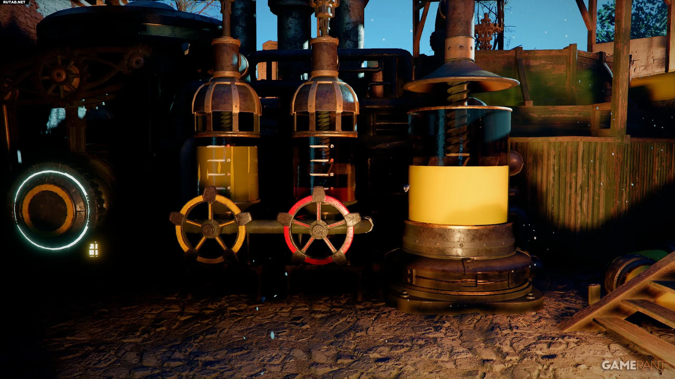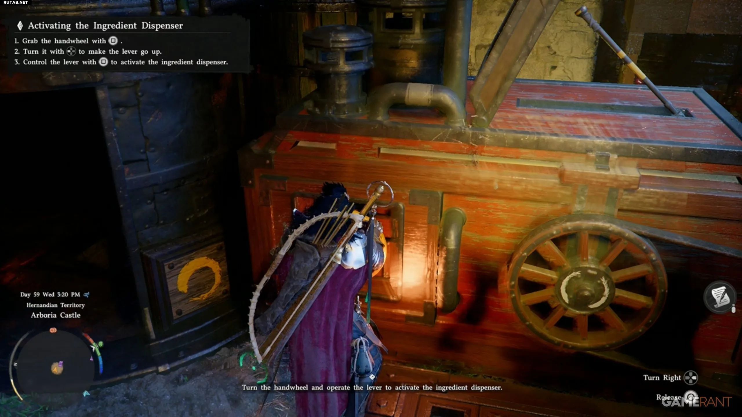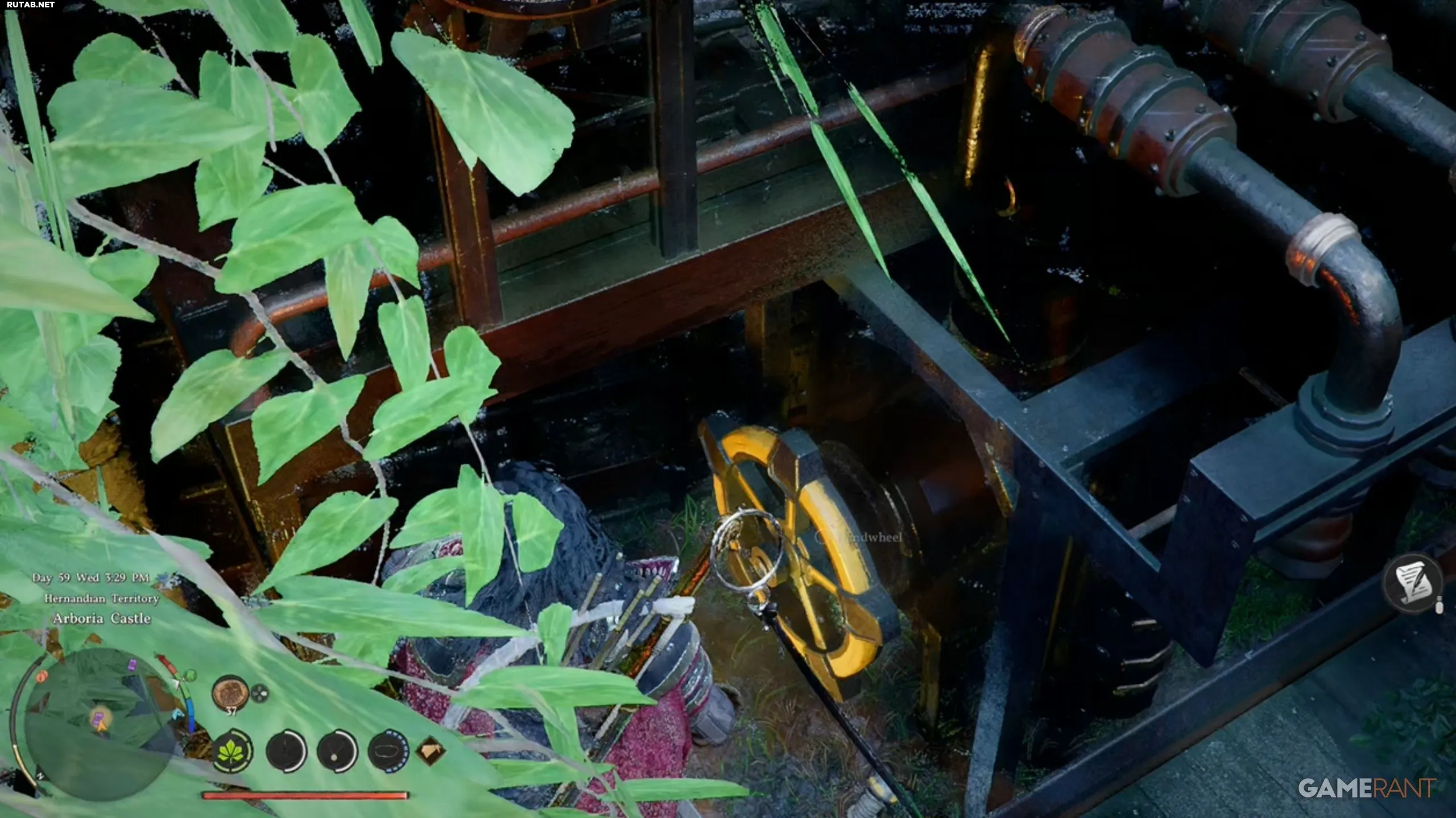 - Позади рычага найдите маховик. Возьмитесь за него (Square) и поверните влево на крестовине, чтобы активировать мойку.