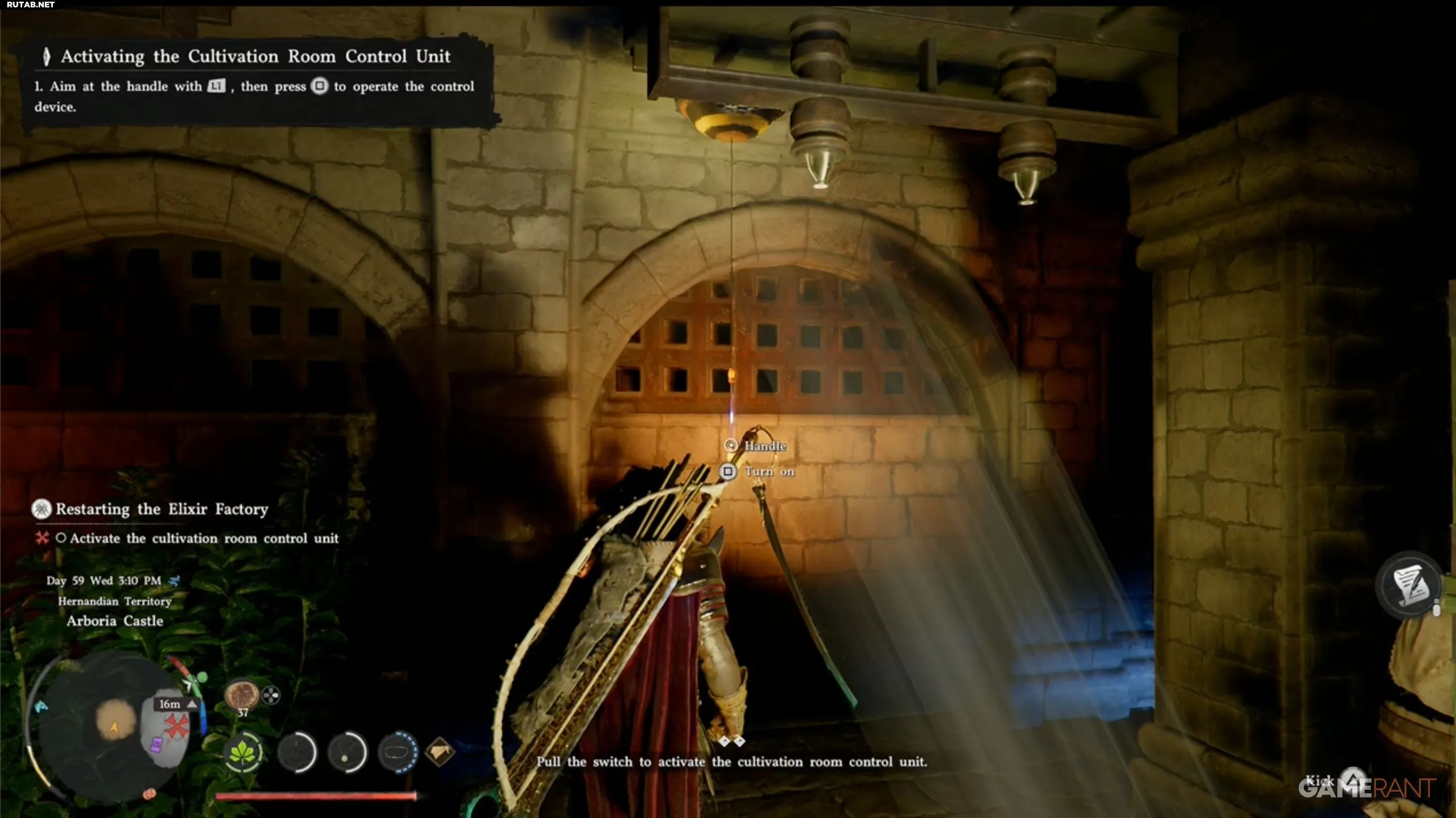 - Спуститесь по лестнице вниз и войдите в комнату. Прямо перед вами будет рукоять, которую можно потянуть, нажав Square.