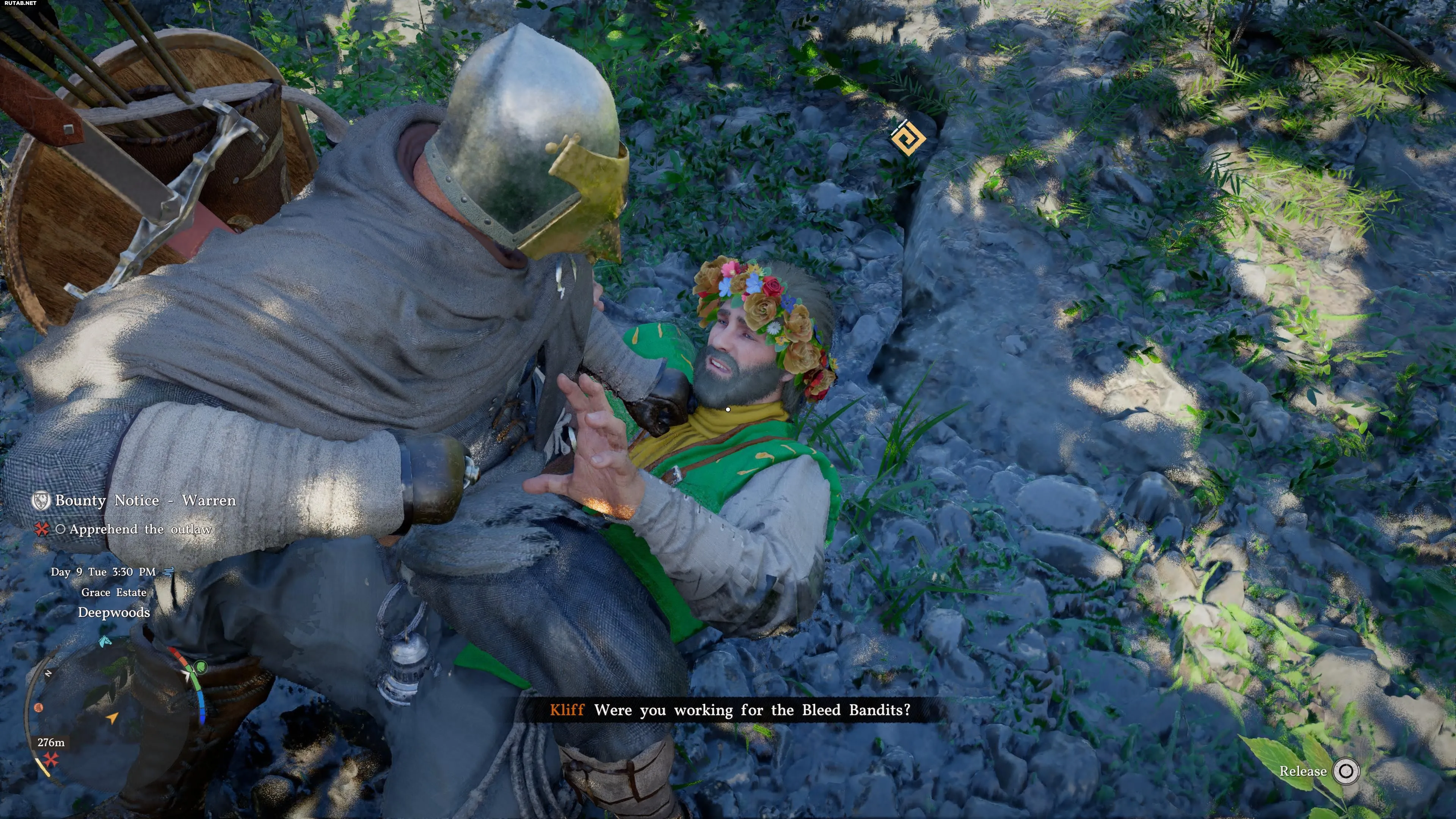 - Он прячется на окраине деревни под деревом. Подойдите и нажмите соответствующую кнопку (X/A), чтобы схватить его, а затем бейте, пока не появится подсказка связать его. Не переусердствуйте с ударами, иначе цель может умереть.