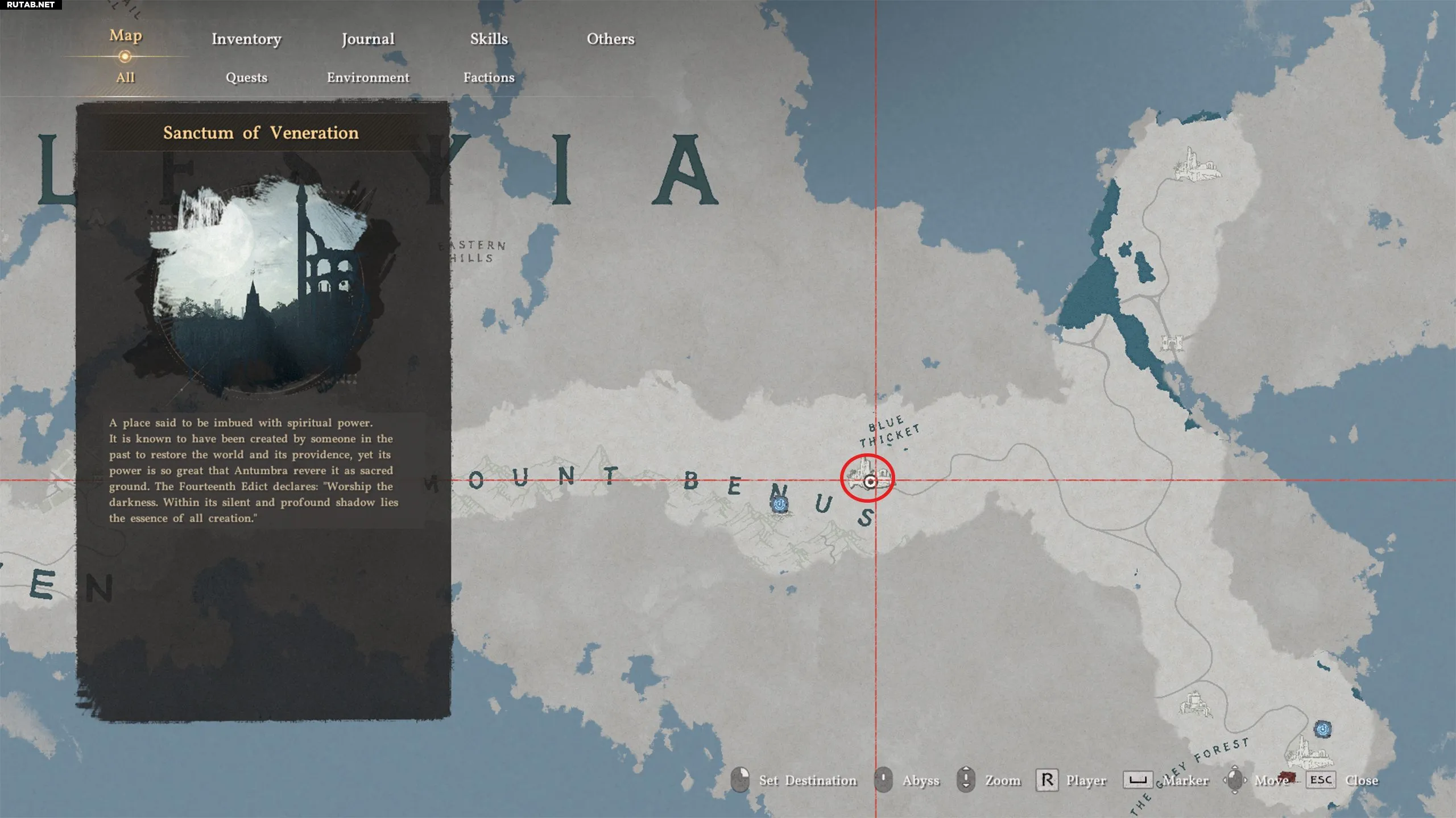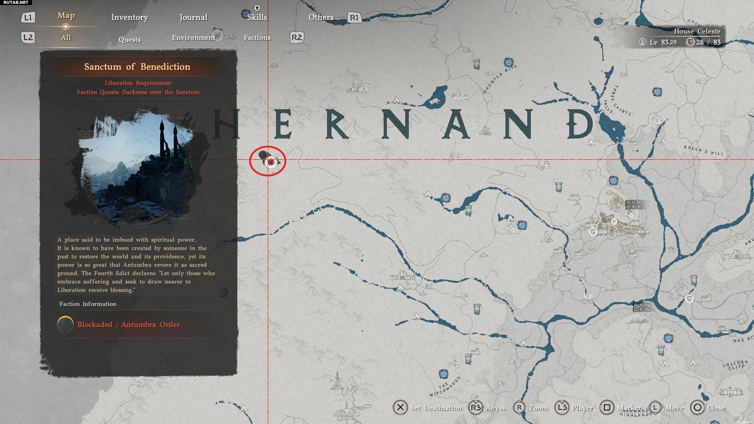Направляйтесь на западную сторону Хернанда, под букву «E» в названии «Hernand», чтобы найти Святилище Благословения. Можно начать путь из города Хернанд и следовать по грунтовой дороге немного на северо-запад, чтобы в итоге найти святилище.
