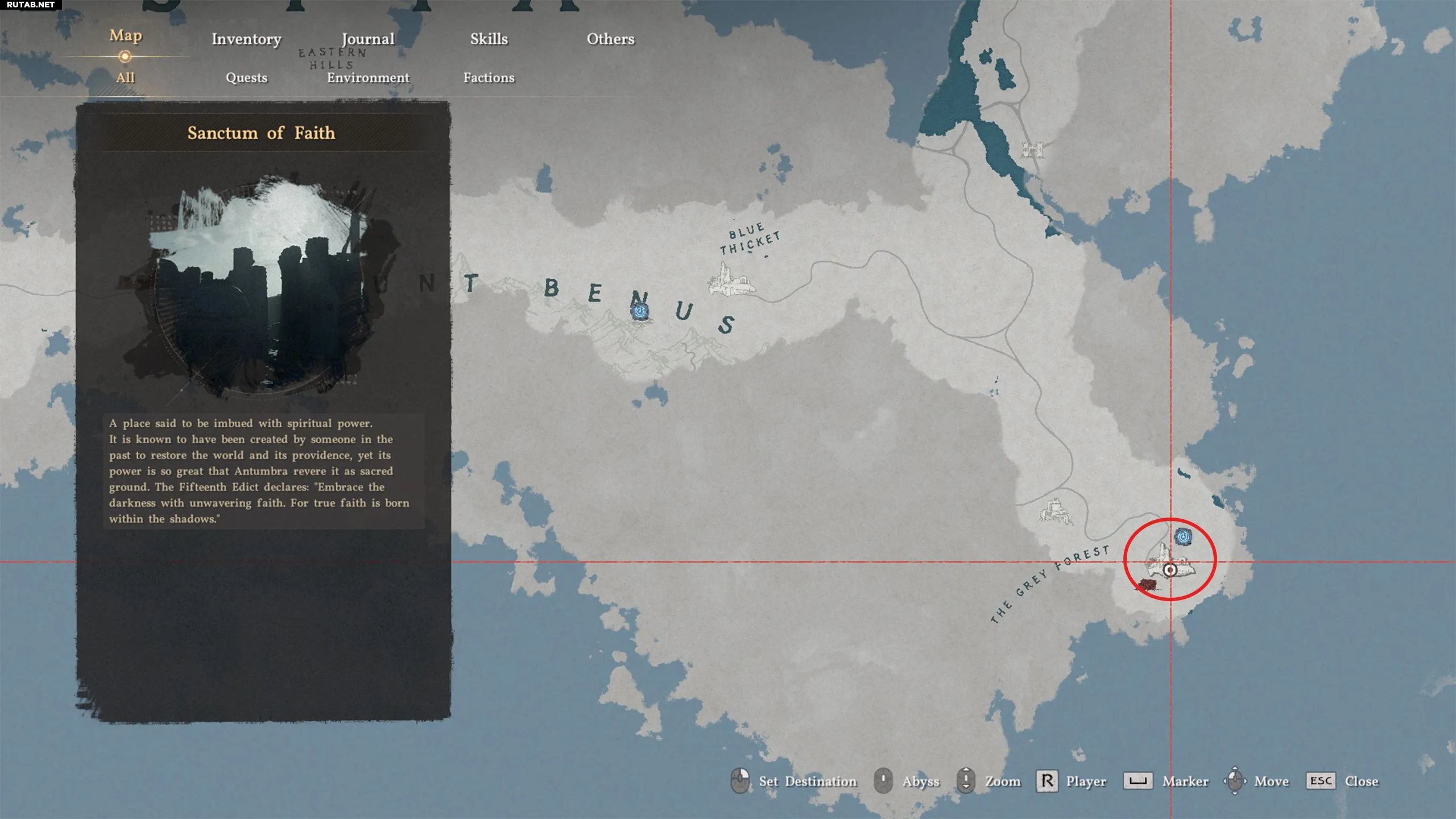 Спуститесь вниз от Синего Чащоба в Делезии к Серому Лесу, чтобы найти Святилище Веры. Активируйте Нексус Бездны рядом с ним для более удобного доступа в будущем.