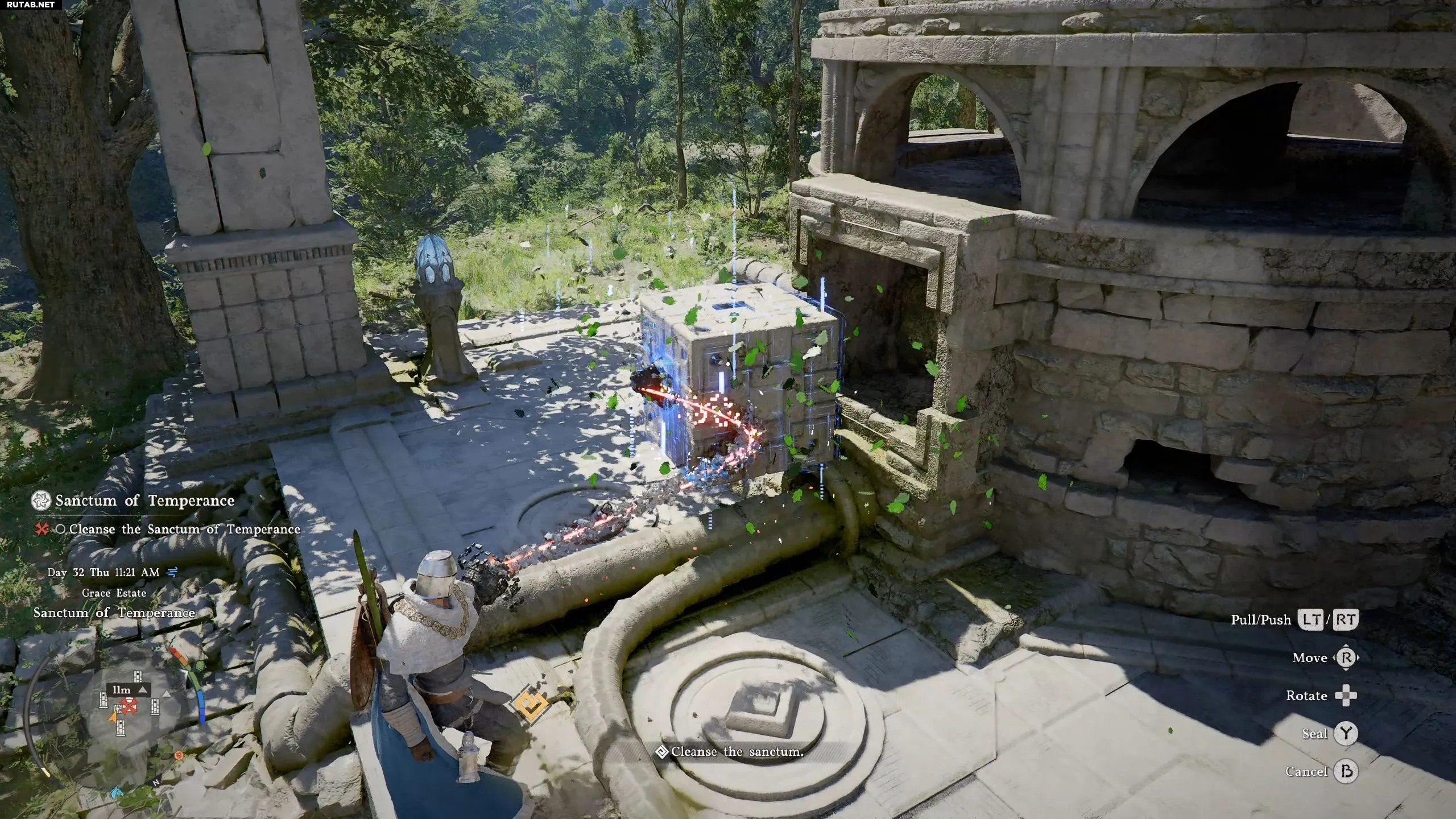 Святилище Воздержания находится к югу от Утёса Единорога, в поместье Грейс в Хернанде. Вероятно, можно отправиться на юг от реки Нас и следовать по грунтовой дороге, чтобы добраться до него. Для его очистки нужно найти два ядра слияния.
