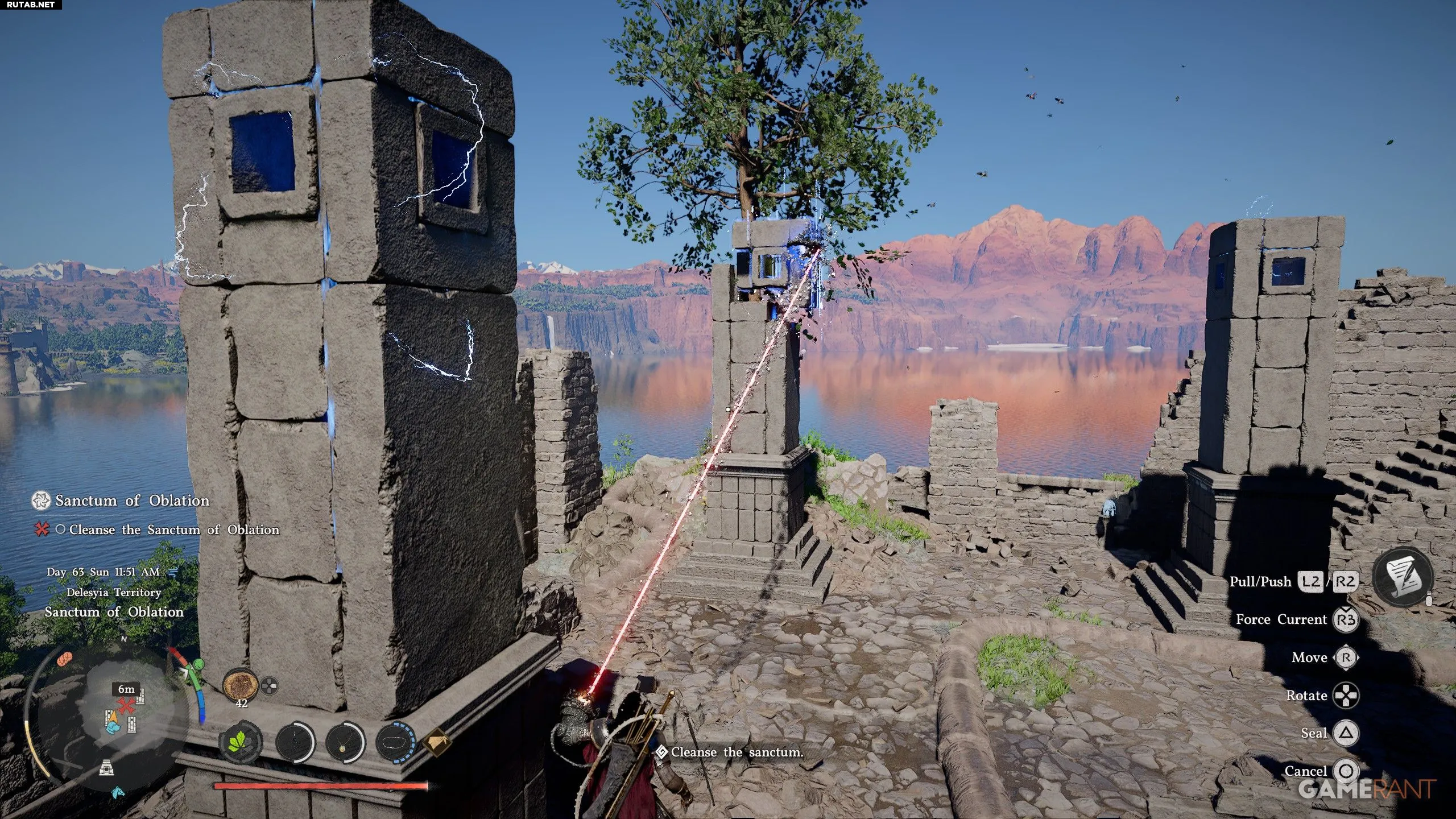 На противоположном берегу, на соседнем участке земли Делезии, следуйте по грунтовой дороге вверх, чтобы наткнуться на Святилище Жертвоприношения. Найдите ядро слияния, чтобы выполнить задание.