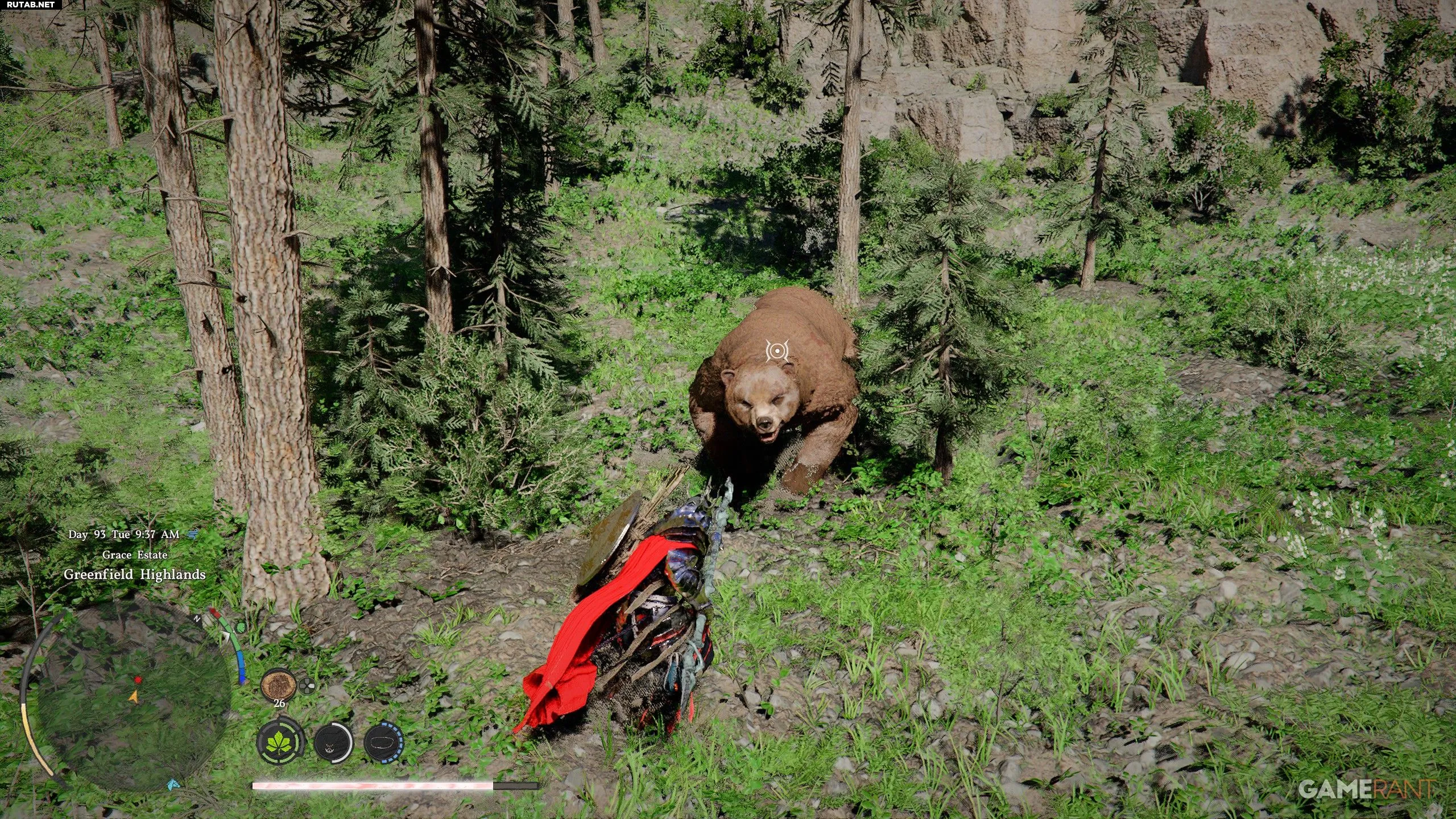 - Гарантированно медведь появляется в Гринфилд Хайлендс у поместья Грейс (отмечено на карте выше). Он возрождается каждые 24 игровых часа.