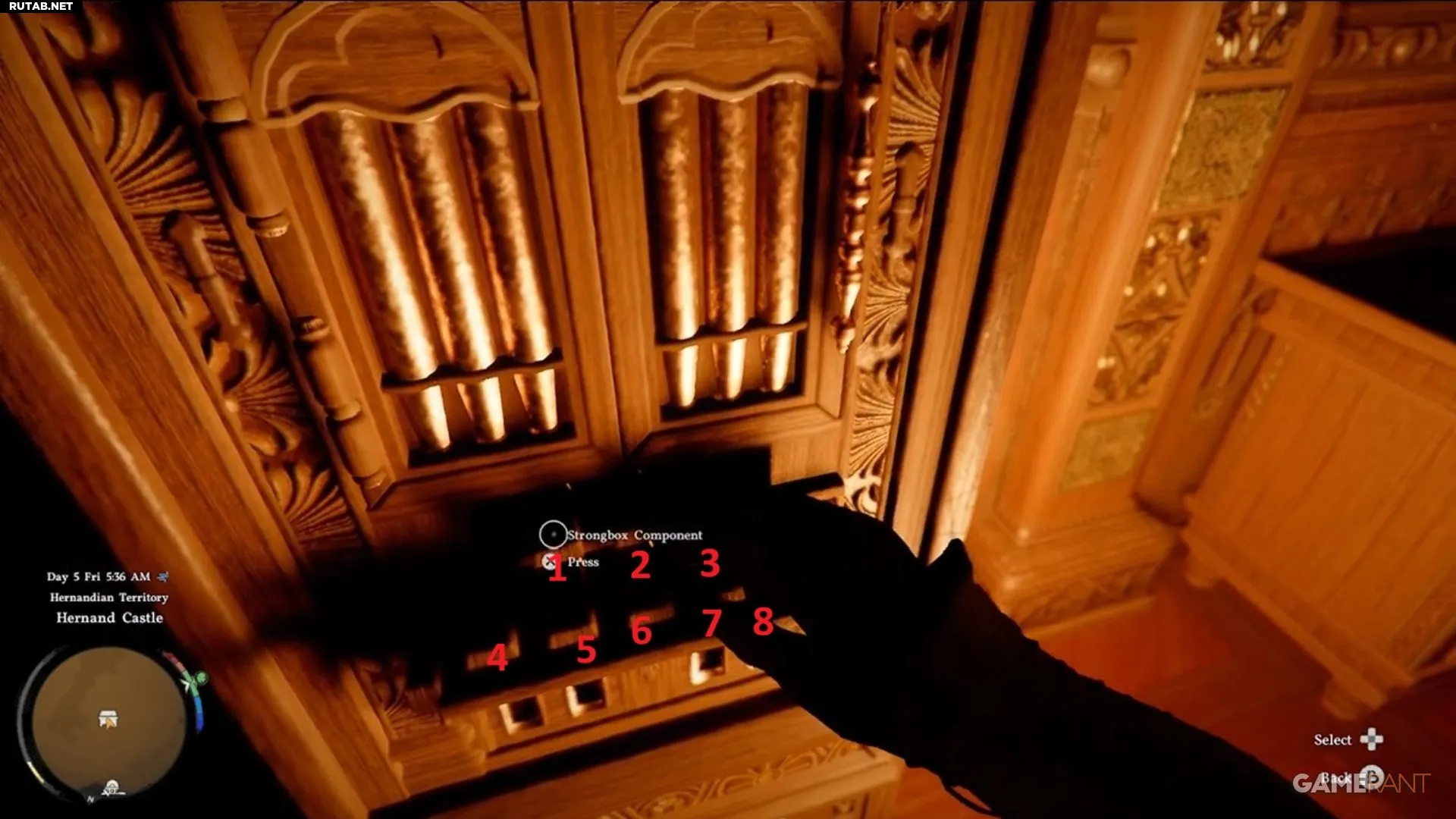 Чтобы открыть сундук в замке Хернанда в Crimson Desert, нужно ввести правильную последовательность на восьми кнопках на его крышке. Если пронумеровать кнопки от 1 до 8 (верхний ряд слева направо — 1, 2, 3; нижний ряд слева направо — 4, 5, 6, 7, 8), то код для открытия следующий: