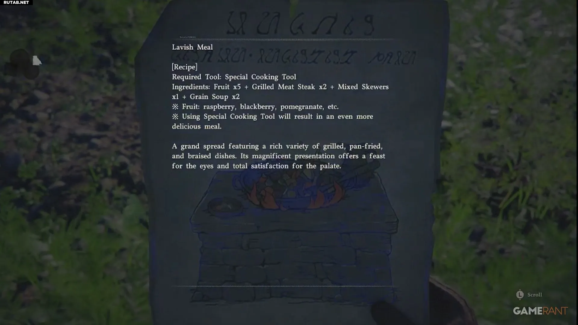После открытия сундука вам, возможно, придется использовать фонарь, чтобы осветить его внутренность и забрать награду — рецепт приготовления «Роскошной трапезы». Это блюдо восстанавливает выносливость и временно отменяет ее расход.