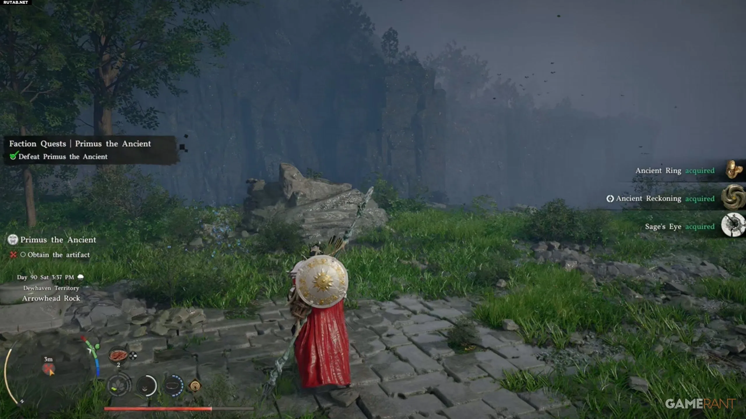 - Примуса Древнего можно найти у Скалы «Наконечник Стрелы» на территории Дьюхейвена, в южной части карты (местоположение отмечено выше).