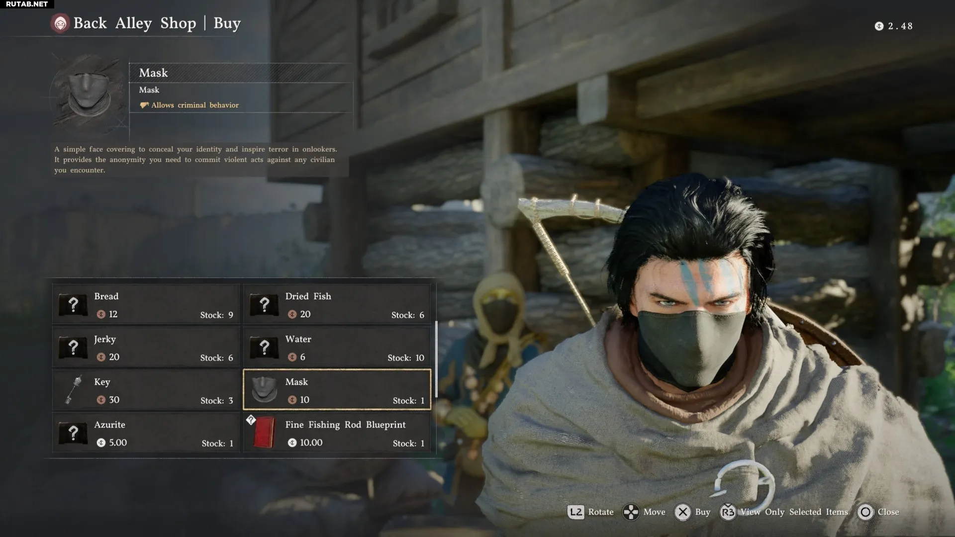 Самый простой и надежный способ — купить маску в подпольной лавке. Такие точки обычно расположены в крупных поселениях или рядом с ними, например, в Гримараке (Хернанде). Однако это и самый дорогой вариант.