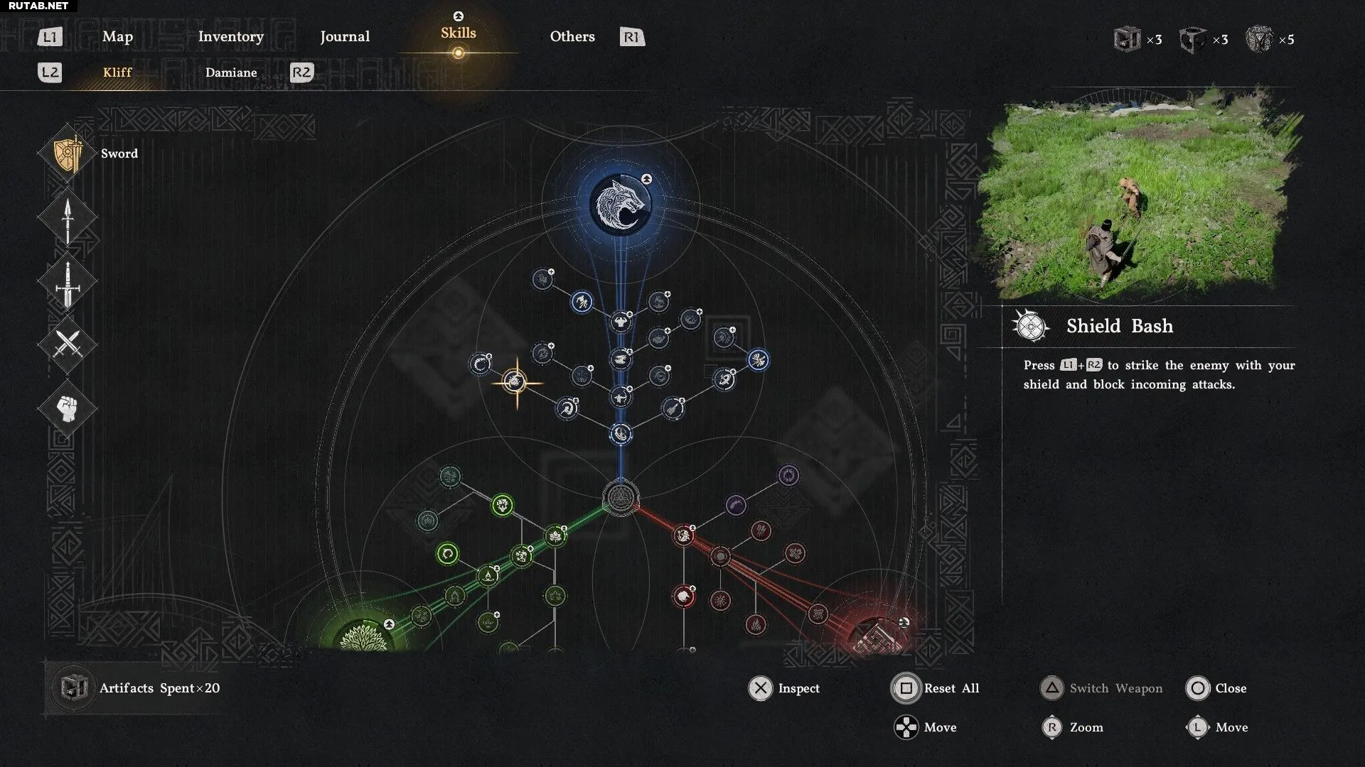 - Добейте врага, используя навык «Удар щитом» (удерживайте L1/LB/CTRL и нажимайте R2/RT/RMB).