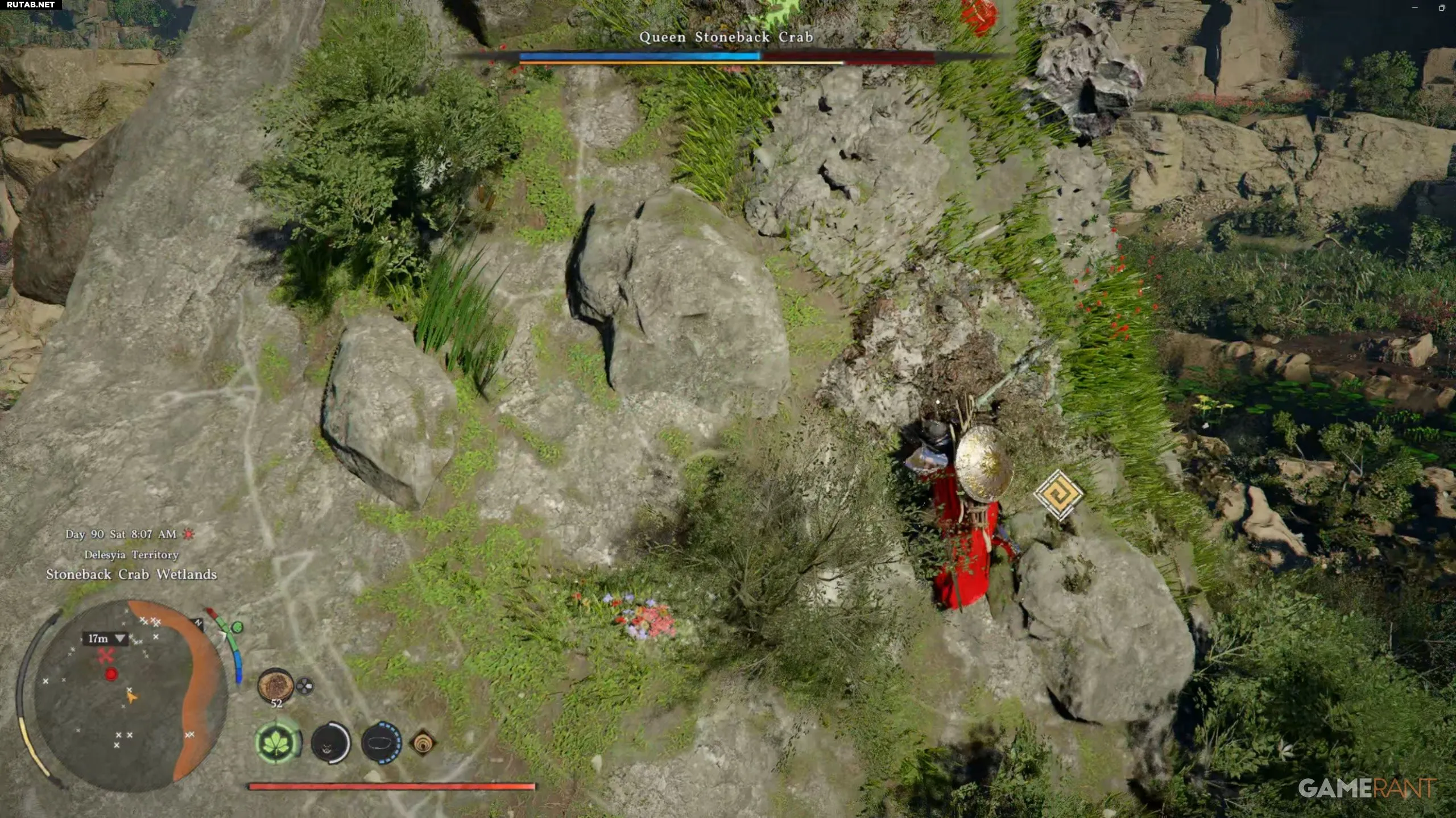 Единственный способ убить Королеву Каменного Панциря — забраться ей на спину, используя Прыжок + Тройной силовой прыжок, а затем уничтожить кристаллы на её панцире. На первой фазе вы можете Уцепиться (R3) и Проткнуть (R2), чтобы ударить по светящимся зелёным трещинам. На второй фазе нужно разбивать глиняные горшки.