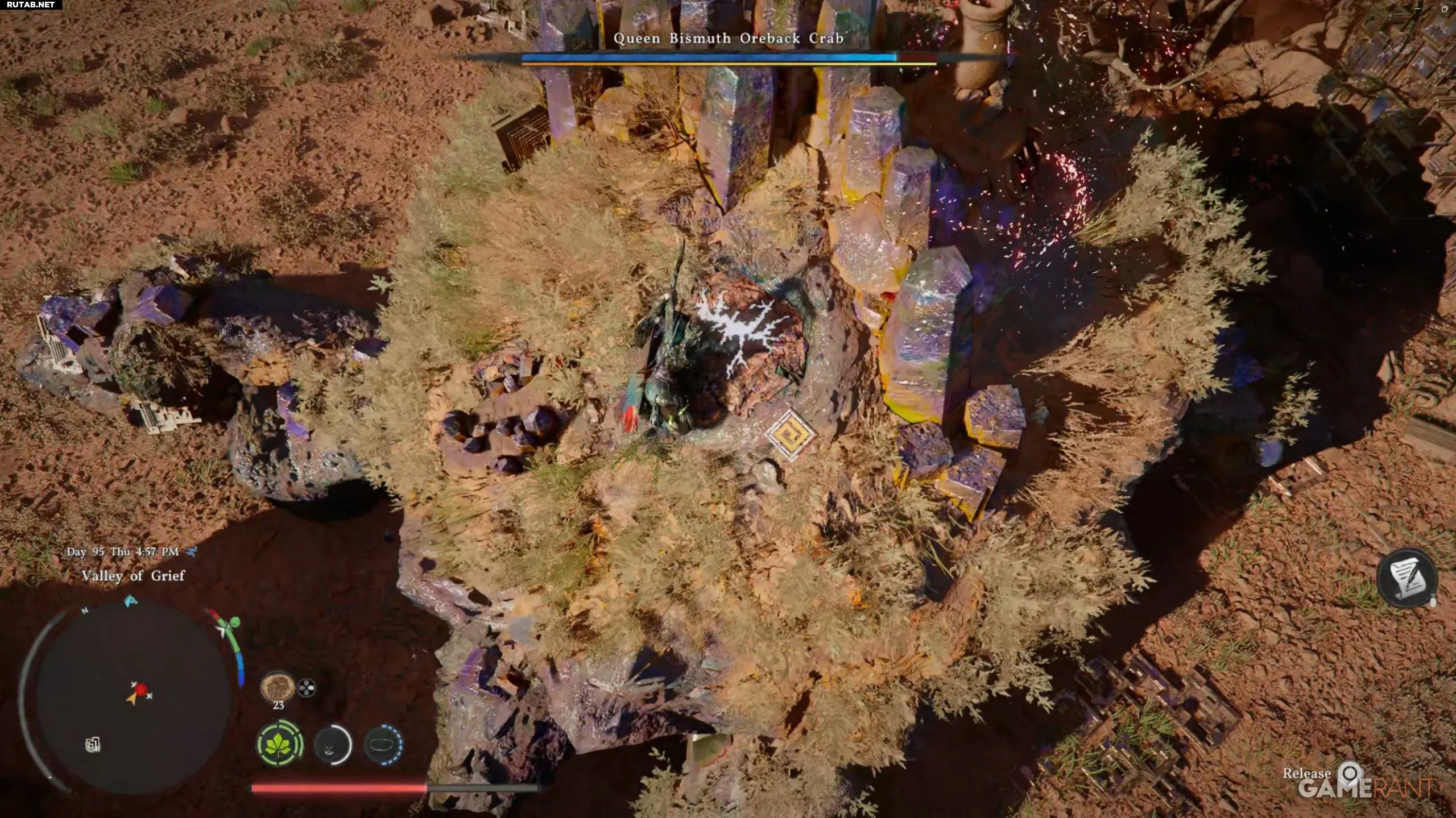 - Миссию, связанную с Королевой Висмутового Панциря, можно найти в задании «Краб-рудоспин в пустыне» во вкладке «Мудрец Пустыни».
