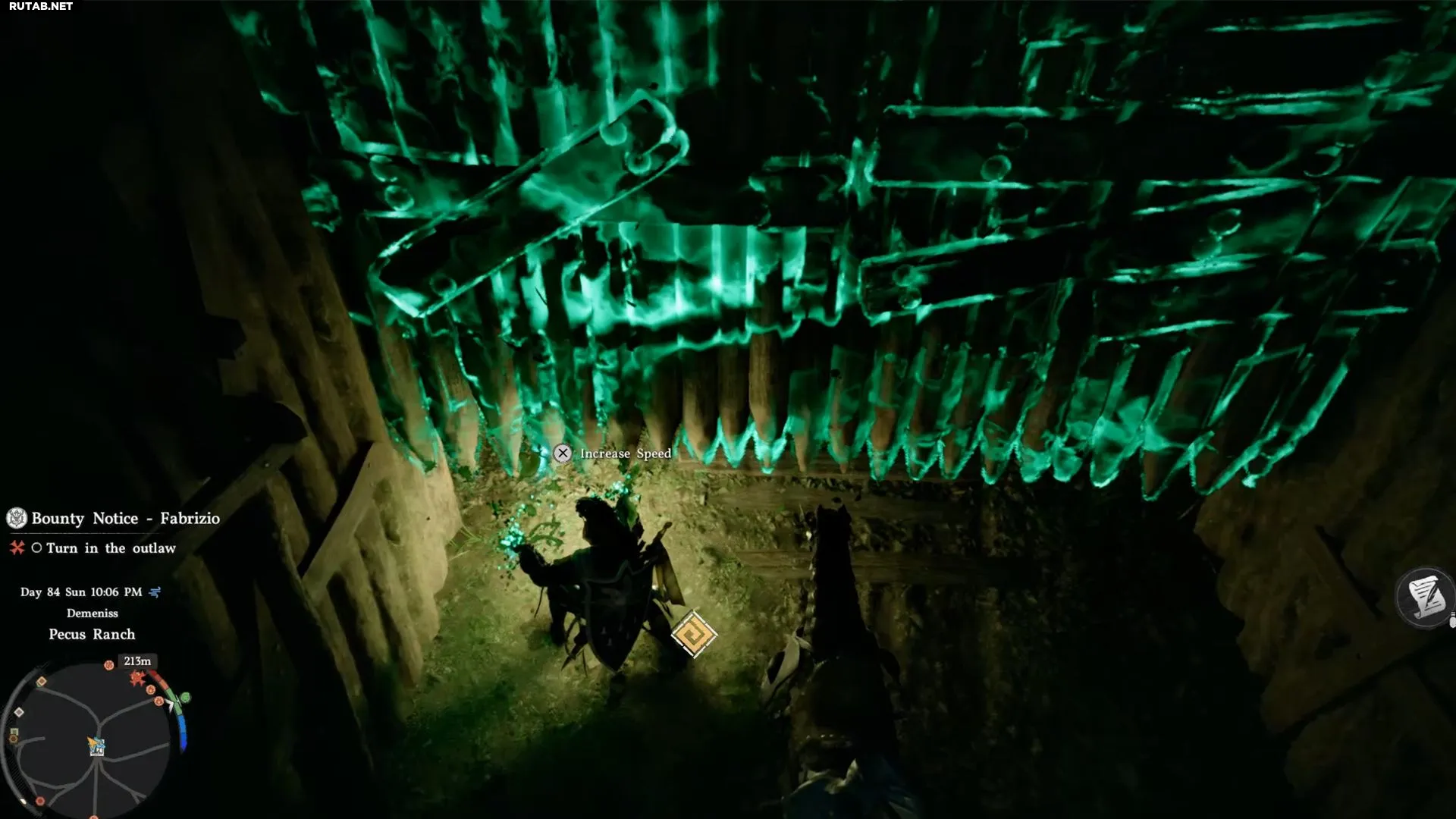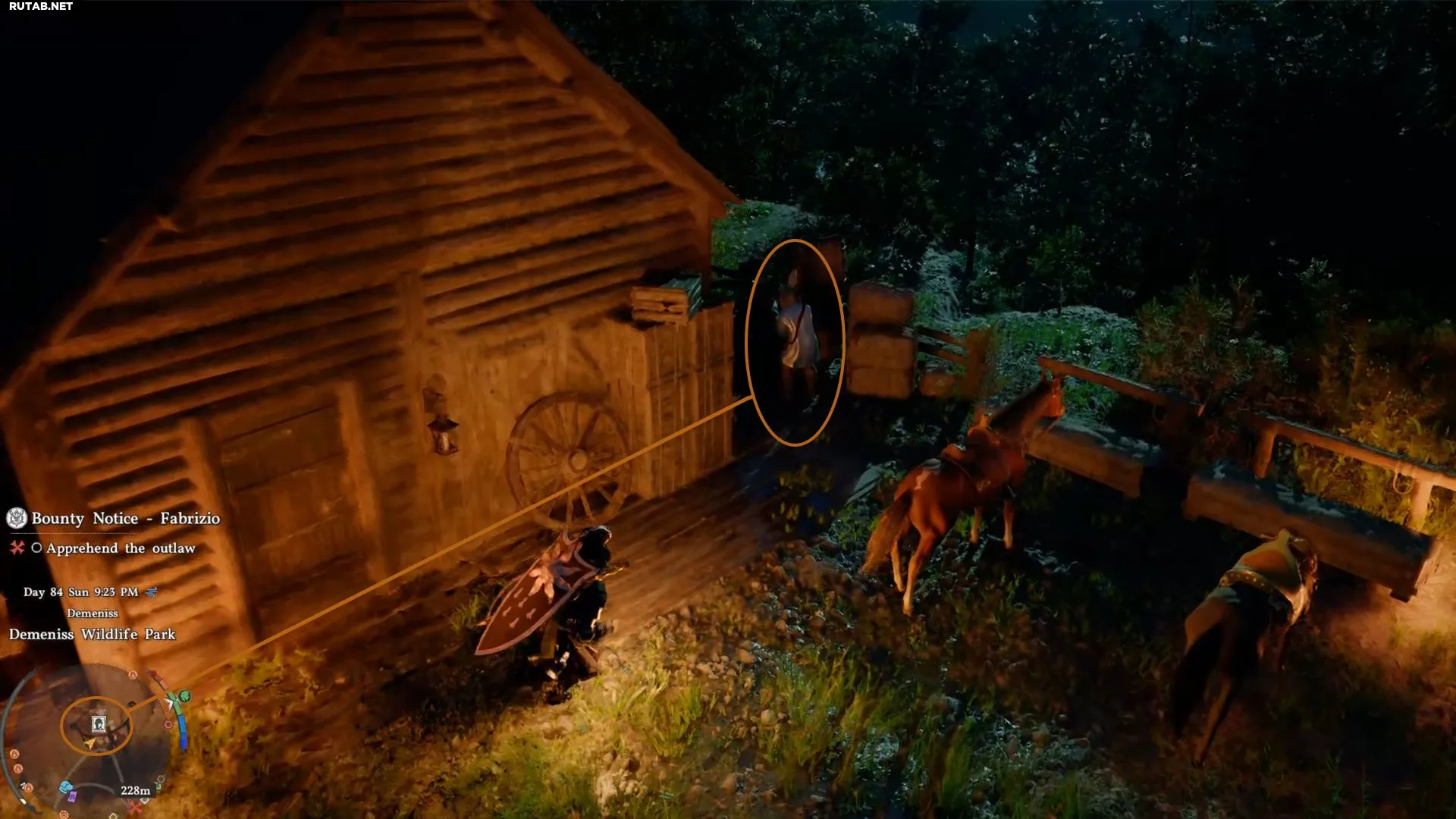 Вы не можете телепортироваться, неся преступника — это вернет его на исходную позицию, и вам придется ловить его заново. Поэтому вам нужно вручную доставить Фабрицио до поста охраны. Вы можете использовать лошадь для его перевозки, но не сможете призывать лошадь к себе, пока Фабрицио на ней, иначе он останется на прежнем месте.