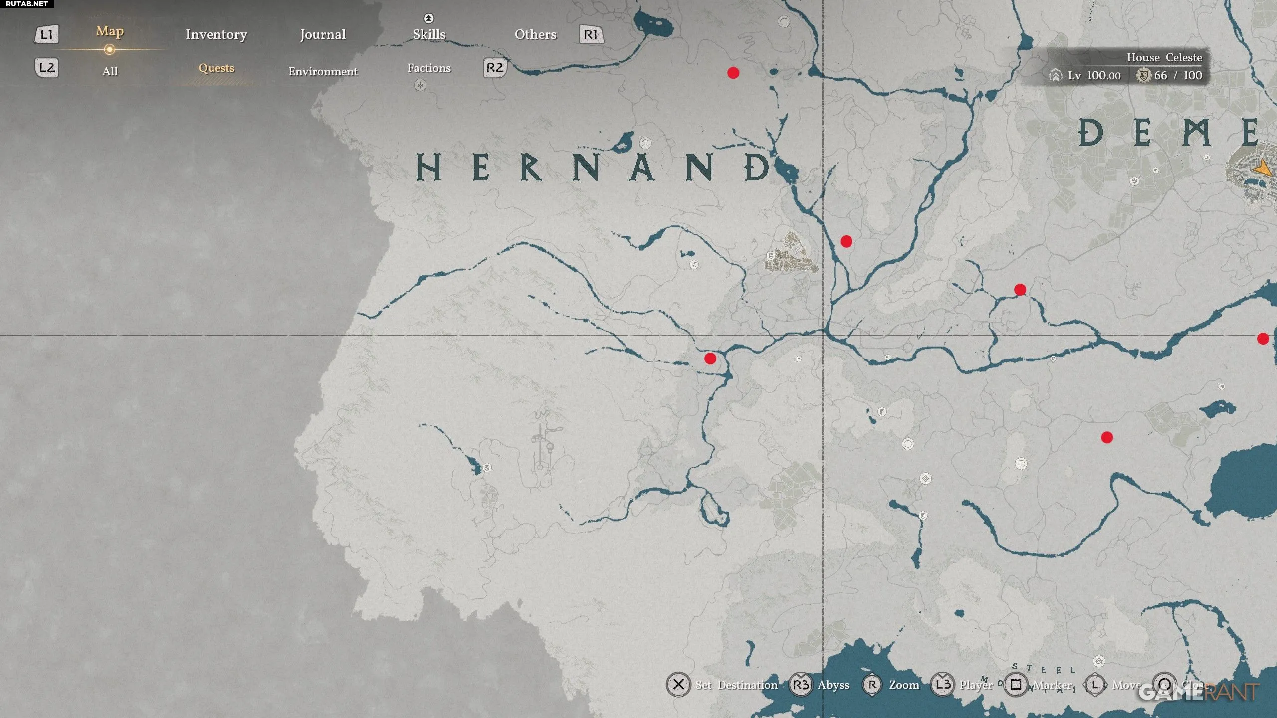 - Проклятые холмы: к северу от буквы «N» в названии «Hernand» на карте.