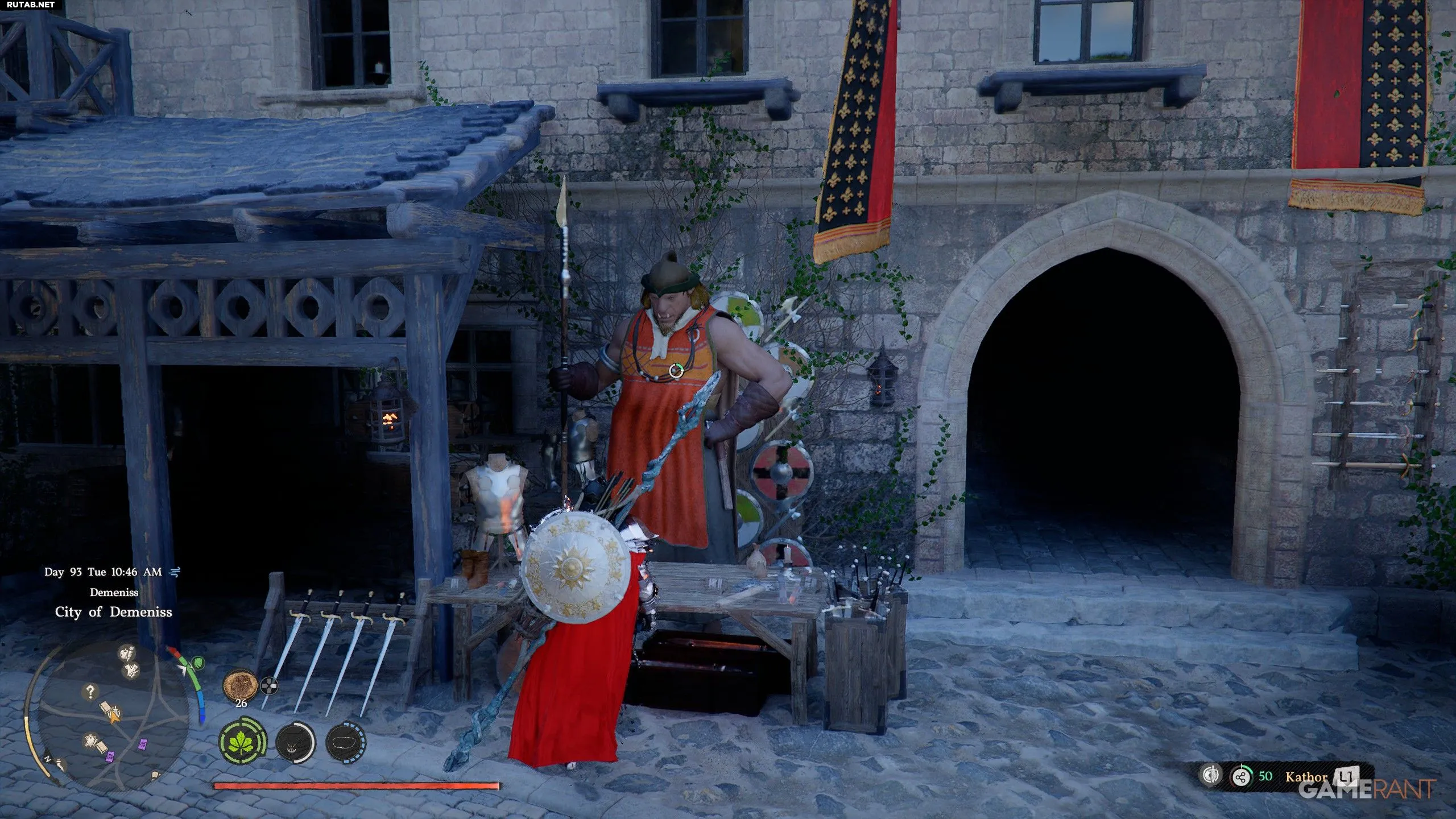 - В каждом городе и деревне (например, в Городе Хернанд или Калфаде) есть «Оружейная лавка», отмеченная на карте значком меча и щита.