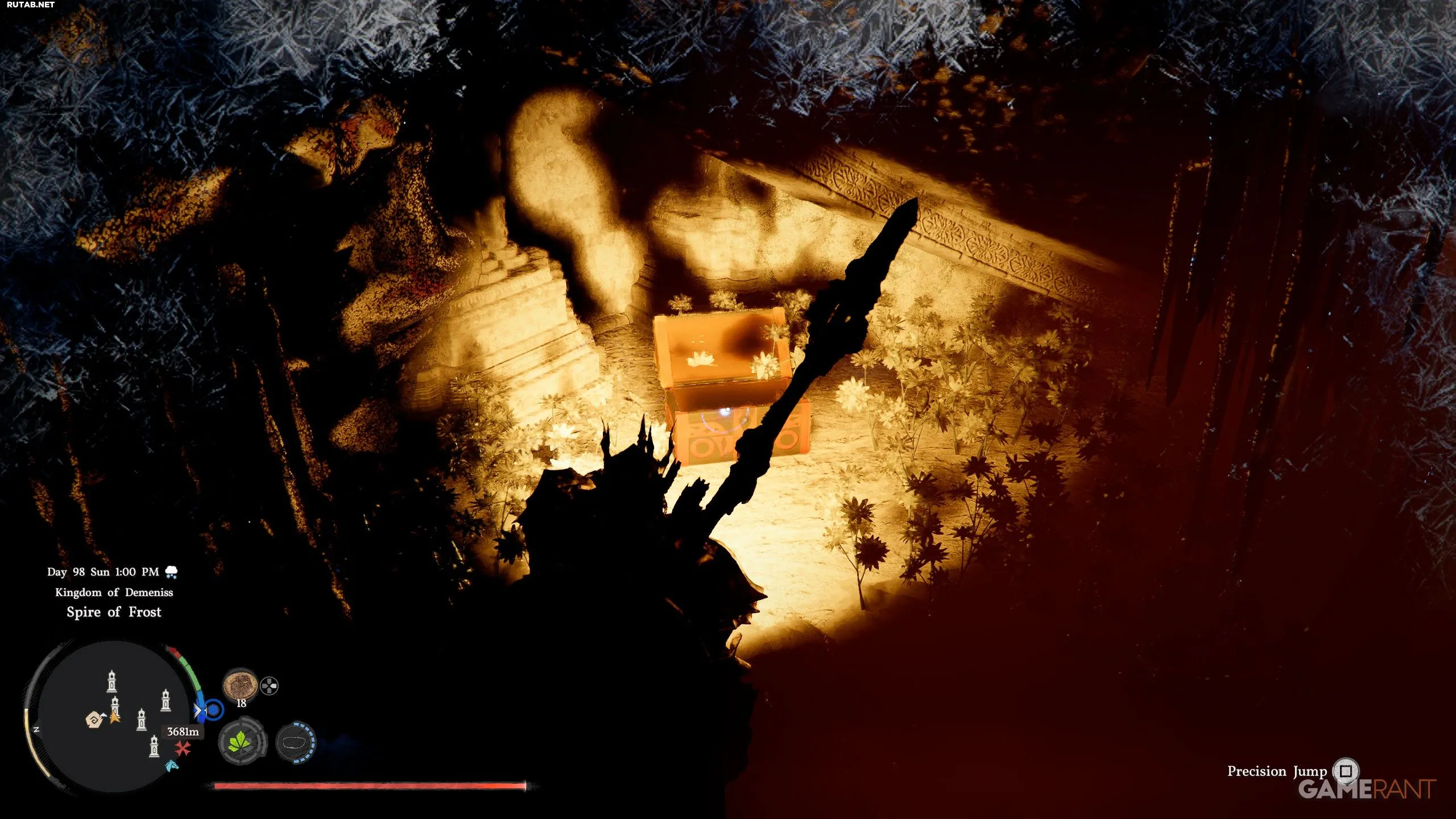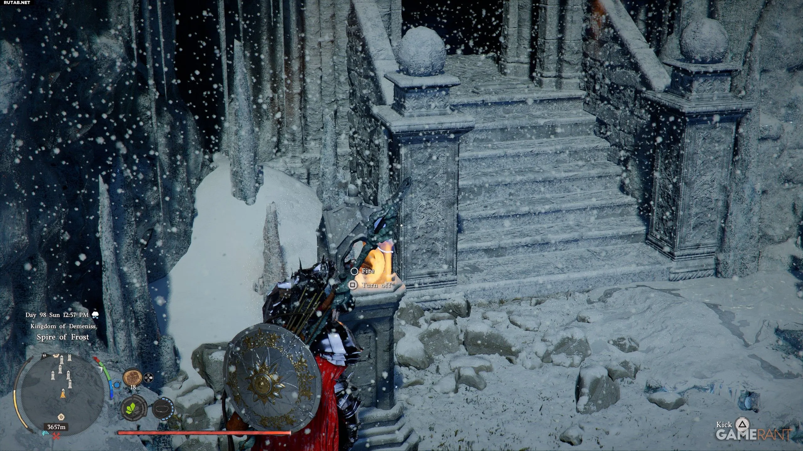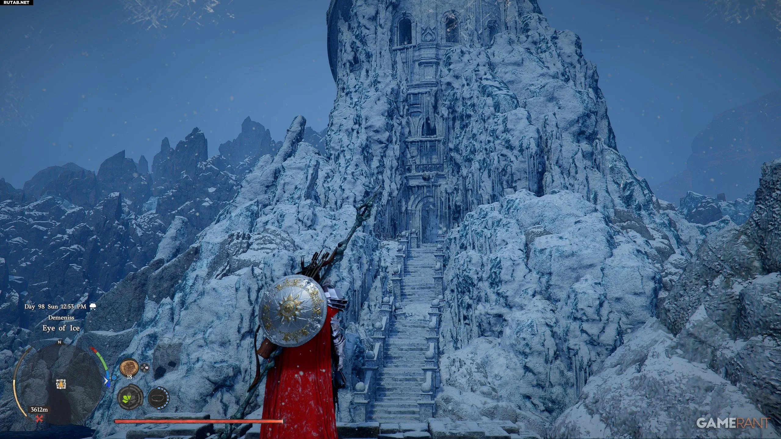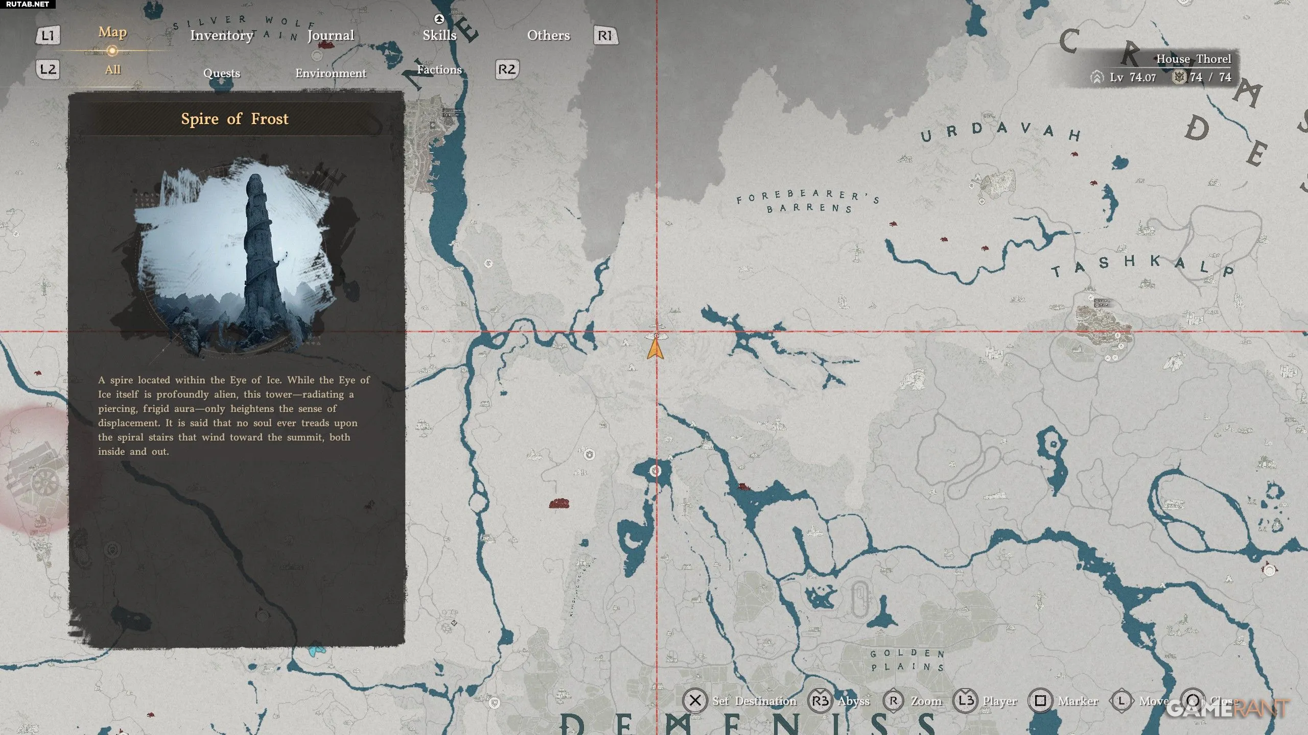 - Frozen Anguish можно получить в Шпиле Льда, в дальнем северном регионе Деменисс (отмечено на карте выше).
