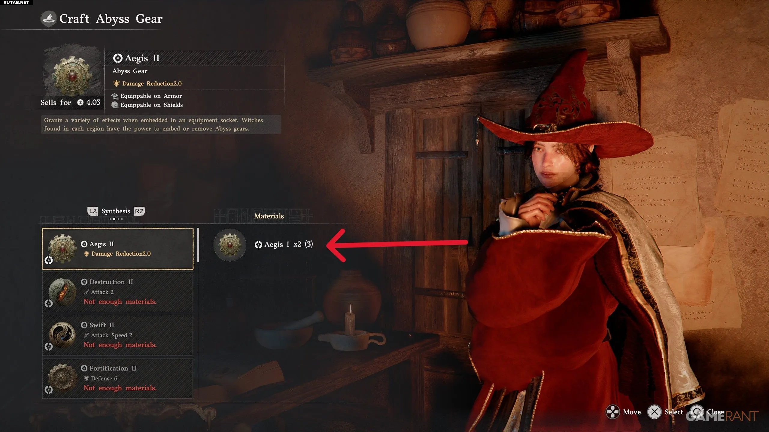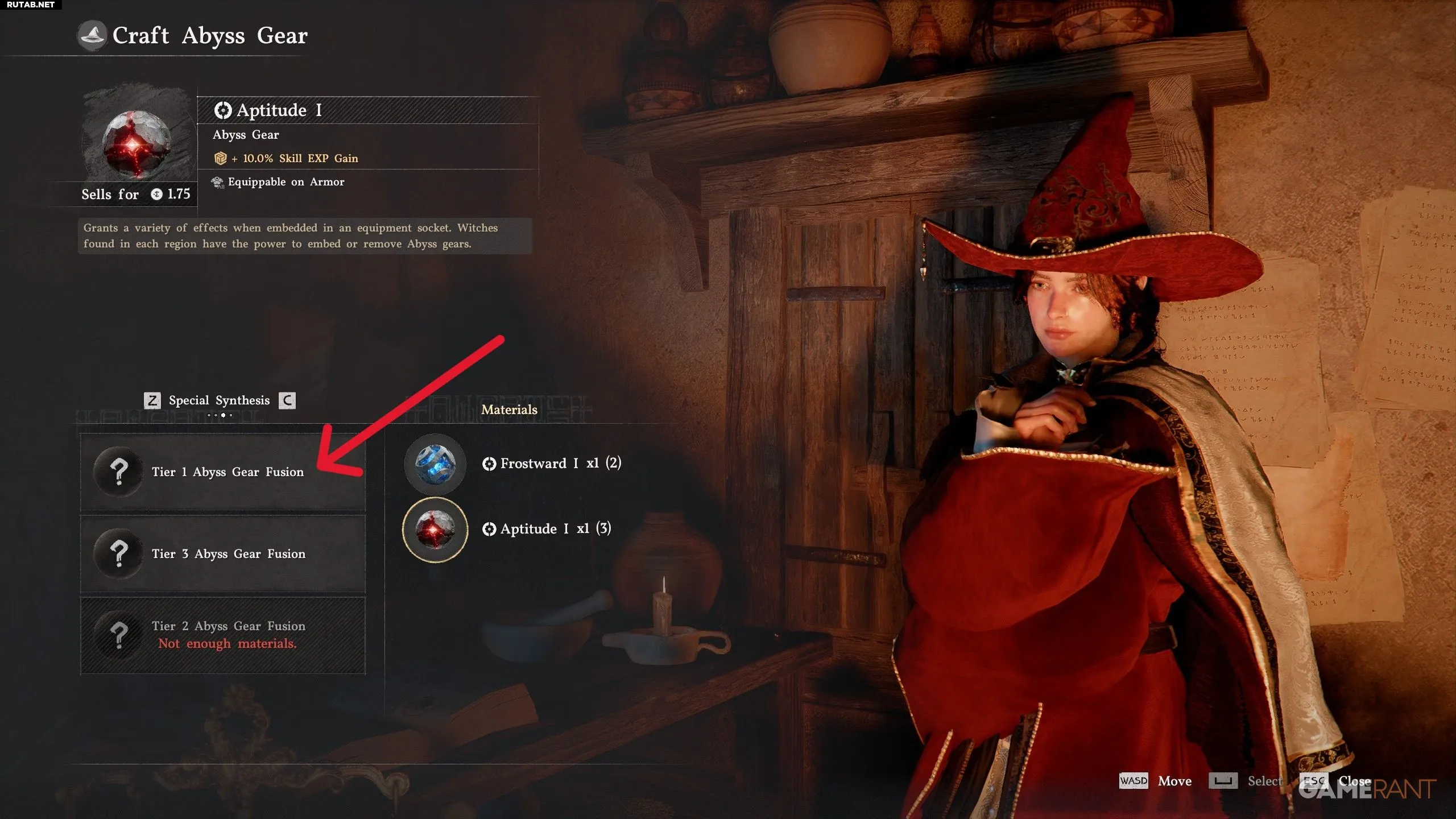 - Если у вас есть дубликаты (например, два «Разрушения Ур. 1»), обратитесь к Ведьме и выберите «Создать Абиссальное снаряжение» (Craft Abyss Gear).