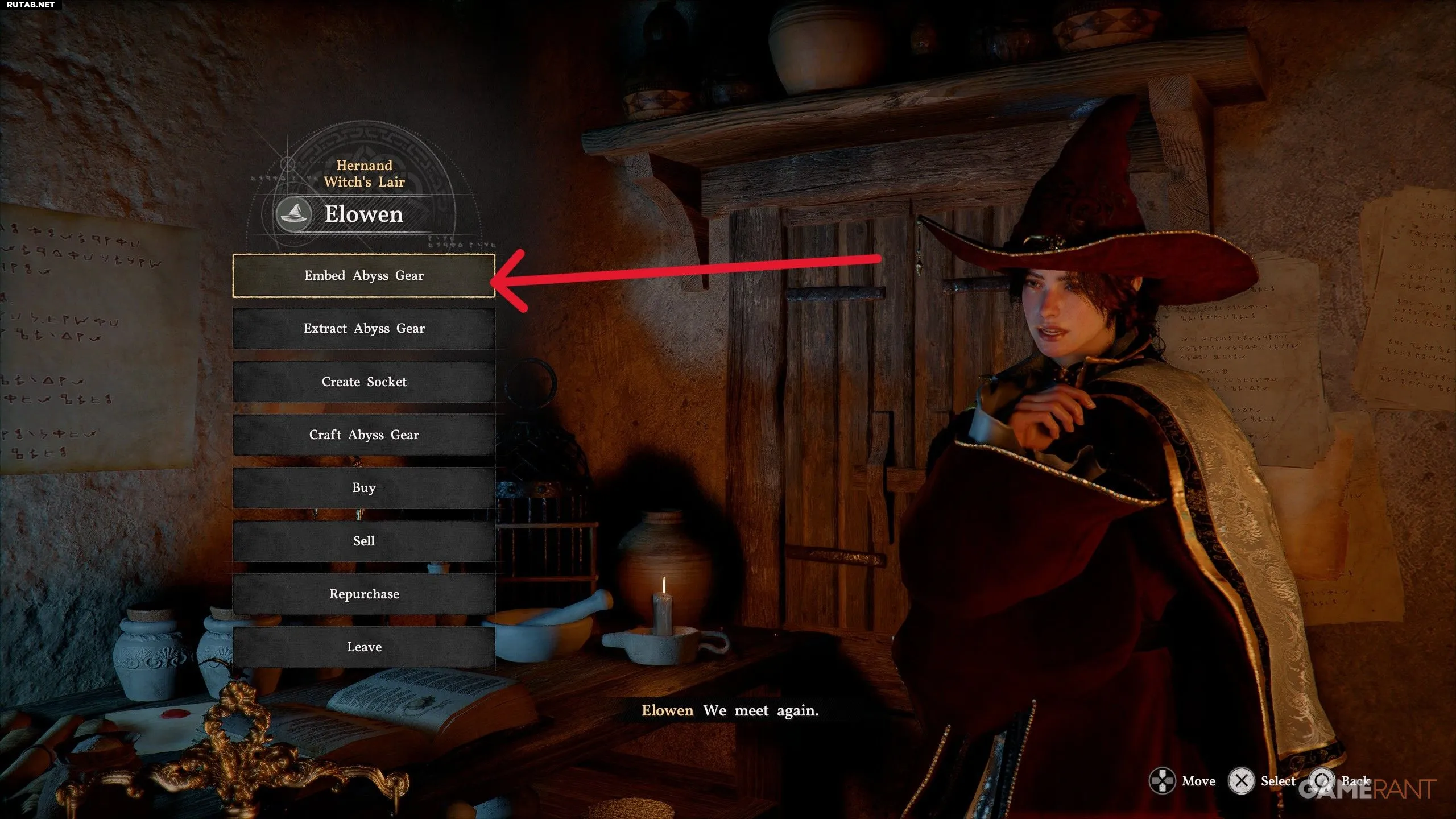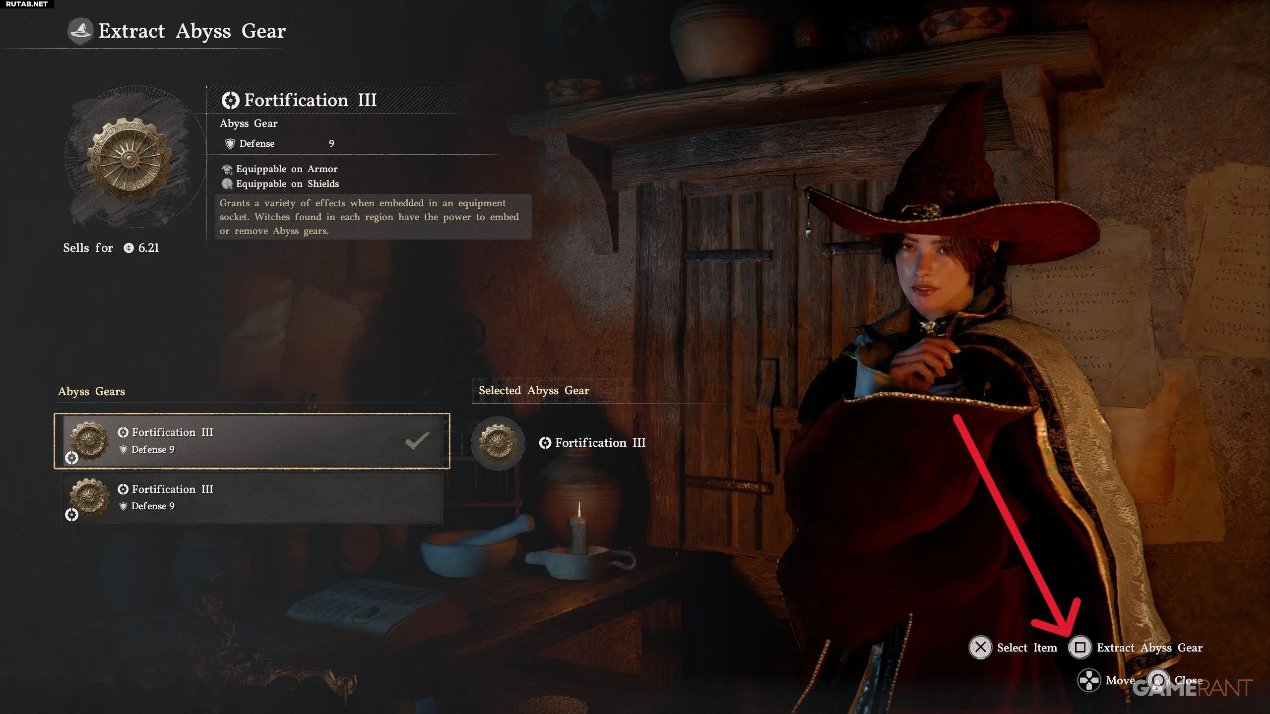 - Если есть, отнесите предмет Ведьме и выберите «Извлечь Абиссальное снаряжение» (Extract Abyss Gear).