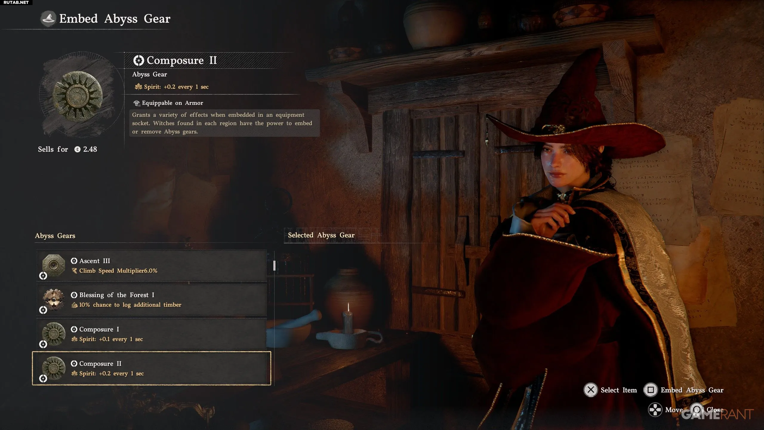 - Затем выберите «Встроить Абиссальное снаряжение» (Embed Abyss Gear) и укажите предмет, который хотите установить.