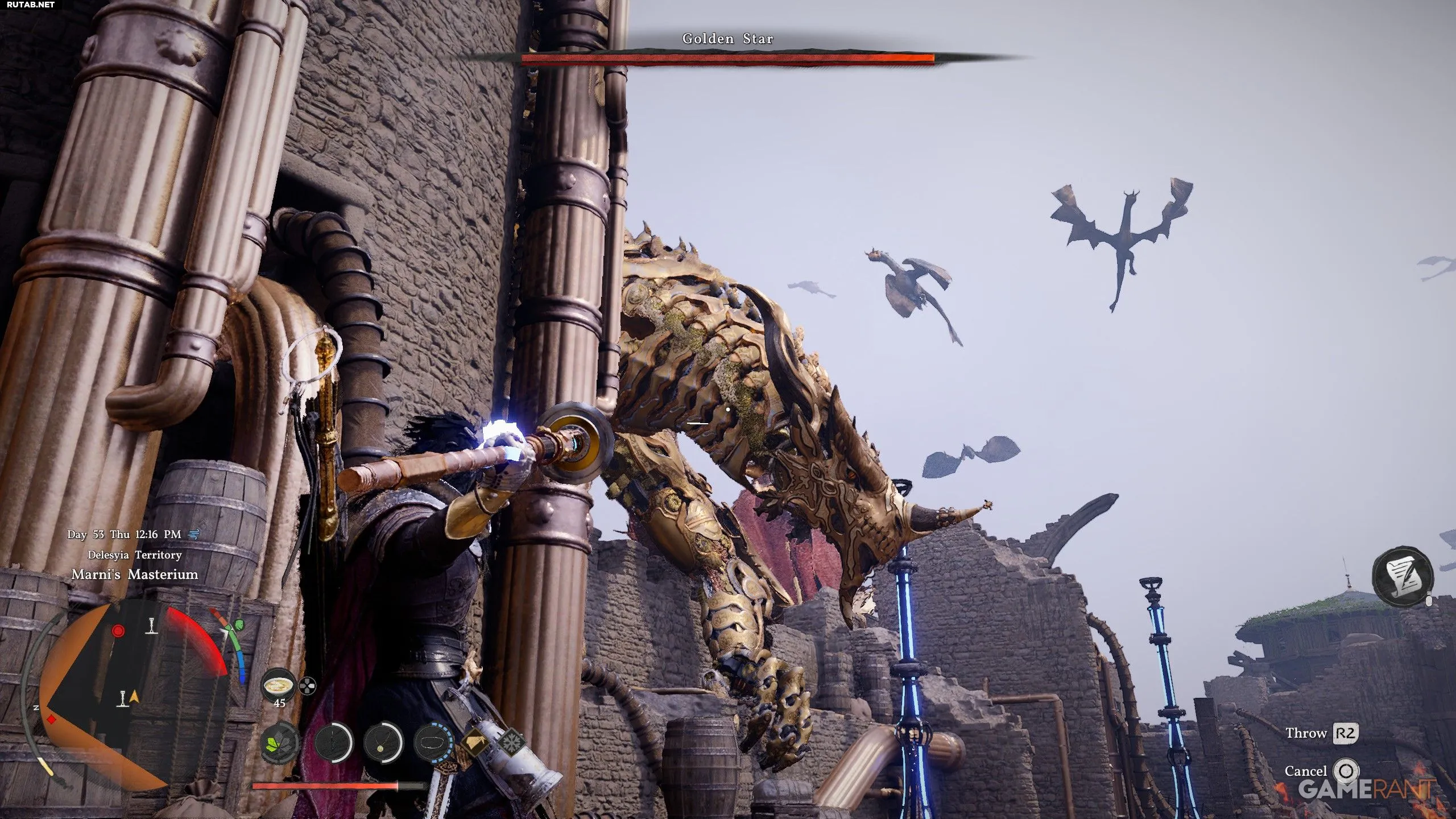 Столкновение с Золотой Звездой, механическим крылатым драконом, может озадачить. Этот противник не даёт себя атаковать в ближнем бою или из лука, постоянно уворачиваясь. К счастью, существует гораздо более простой способ превратить этого гиганта в металлолом.
