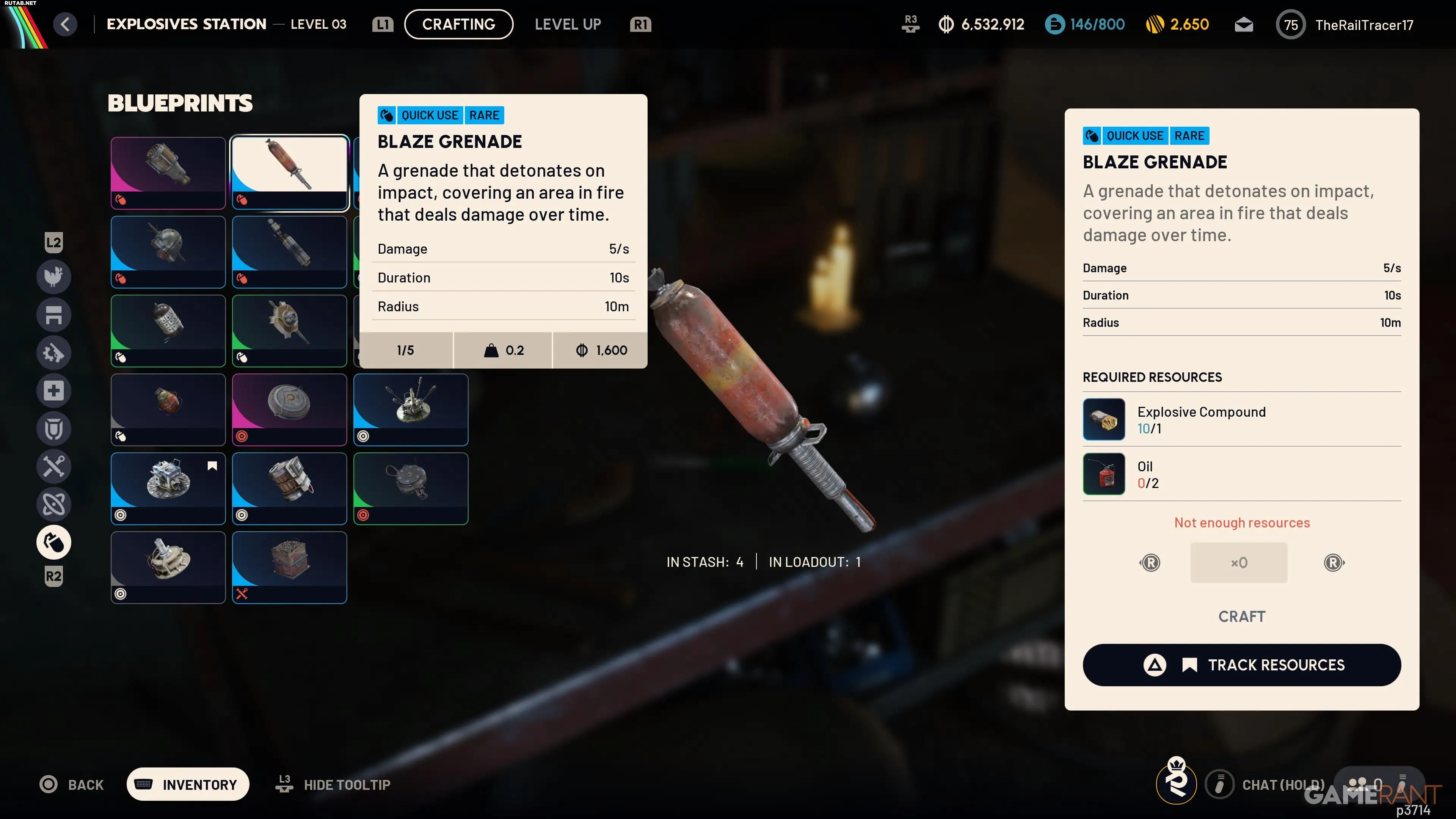 Вам потребуются три предмета: Шоковая мина, Газовая граната и Зажигательная граната. Газовую гранату и Шоковую мину можно купить у торговца Аполло за внутриигровую валюту. Зажигательную гранату необходимо создать на Взрывном стенде, потратив 1 Взрывчатое вещество и 2 Масла. После получения всех предметов переместите их в свой инвентарь перед началом вылазки.