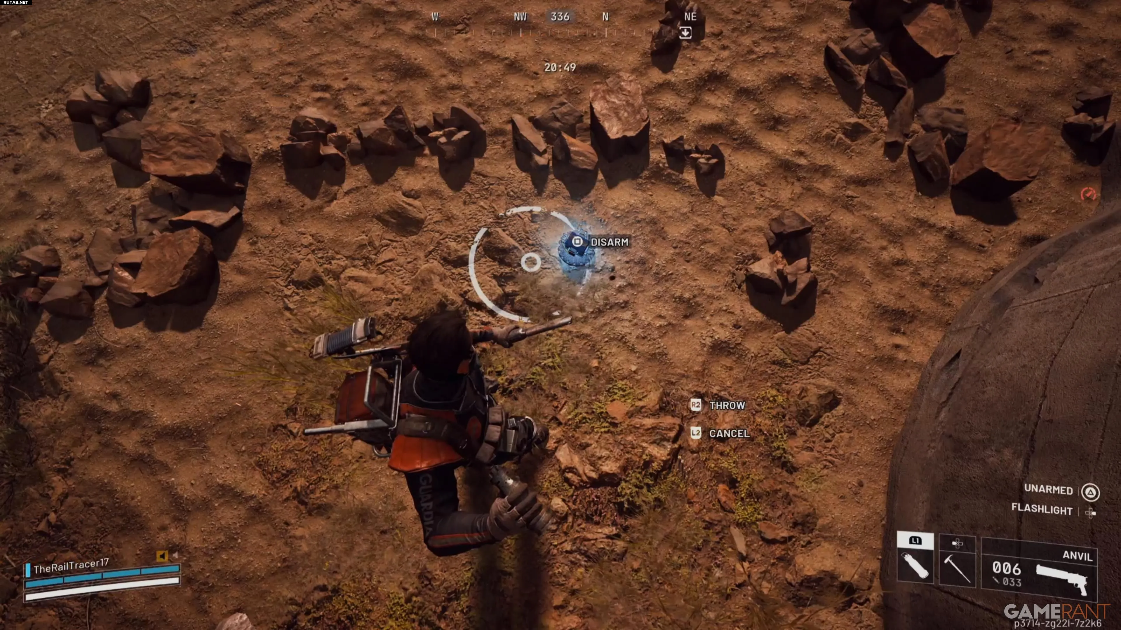 - Пока действует эффект газа, бросьте Зажигательную гранату прямо на себя и на мину.