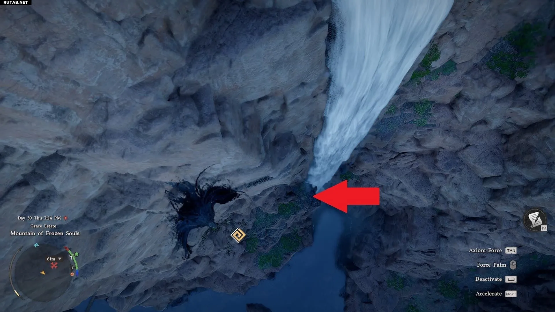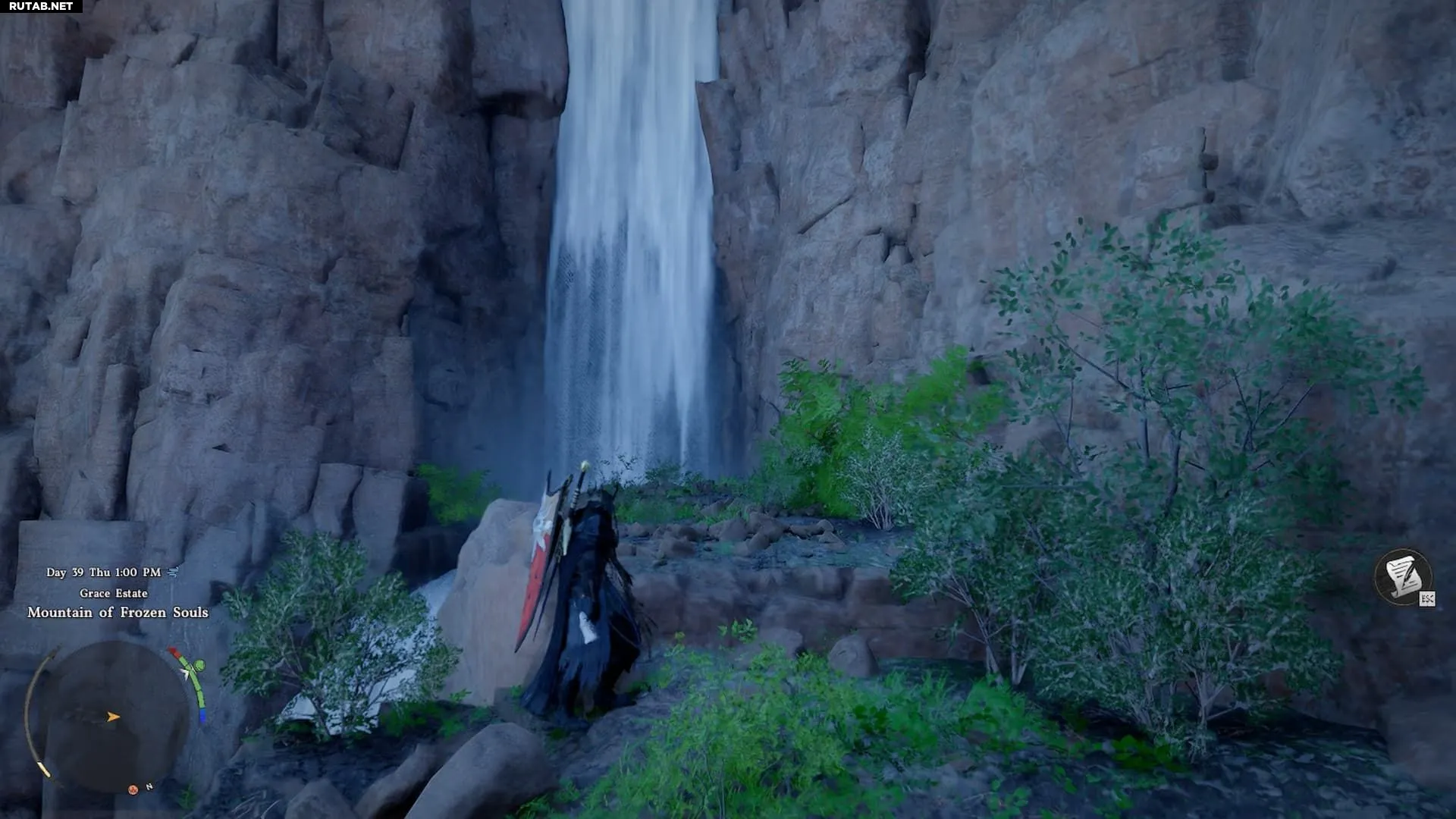 Меч Дьявола Тростника также спрятан в пещере за водопадом. На этот раз искать нужно в «Пещере Рассвета», которая находится к северу от места, где вы нашли нагрудник, и к востоку от «Бездонного узла» Долины Тростникового Ветра. К пещере лучше подходить сверху, так как уступ, ведущий к ней, сложно достичь снизу.